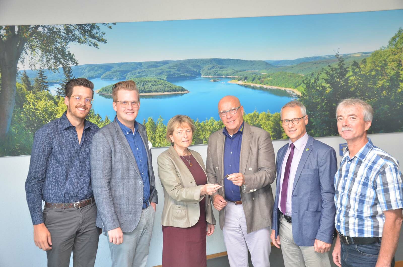 »Wir wollen die Jugenderholungsstätte aus dem Dornröschenschlaf erwecken«, erklärt Matthias Kaulard. Der bekannte Unternehmer hat das Jugendferienheim im Schilsbachtal erworben und will es für Jugendliche mit und ohne Handicap zum attraktiven Ausgangspunkt für Natuerlebnis machen. Rursee (Fö). »Unsere Heimat ist lebens- und liebenswert. Die einzigartige Natur für möglichst viele Menschen erlebbar machen sind für uns Ziel und Anspruch zugleich«, freut sich Matthias Kaulard mit seinen Söhnen Urs und Beat auf eine neue Herausforderung. Die Kaulards, die in der Vergangenheit nicht nur als Fachleute für Augenoptik und Hörgeräte von sich reden gemacht haben, sondern seit dem Vorjahr auch ein Hotel in Simmerath betreiben, wollen das in die Jahre gekommene Jugendferienheim zur inklusiven Jugenderholungsstätte machen. »Wir wollen gerade jungen, hörgeschädigten Menschen unsere Heimat näher bringen und sie in naturnaher Umgebung fördern«, erklärt Urs Kaulard. Erste Kontakte habe man bereits mit einer Aachener Schule für Gehörlose aufgenommen. Doch auch den Jugendtourismus generell wolle man am Rursee stärken. Beat Kaulard: »Wir wissen noch nicht wann, aber die Einrichtung soll für junge Menschen mit und ohne Handicap attraktiv sein - dort können sie gefördert werden und doch abenteuerliche Freizeit genießen.« Doch ehe es soweit ist, müssen Matthias Kaulard und seine Söhne noch einige Behördengänge hinter sich bringen. »Es gibt kein Warmwasser, teilweise keine Heizung, die Abwasserbeseitigung muss saniert und der Brandschutz auf neuesten Stand gebracht werden«, zählt der neue Besitzer des idyllischen Areals auf. Einige Bereiche seien in baufälligem Zustand: »Alles, was zu retten ist, werden wir erhalten«, das habe man am Hotel Kragemann bereits bewiesen, steht eine Menge Arbeit vor dem Trio. Und auch der Wasserverband Eifel-Rur müsse eingebunden werden. Dank an Kersting »Wir freuen uns, dass wir einen neuen Betreiber für das Jugendferienheim gefunden haben und wissen das Anwesen bei Familie Kaulard in den besten Händen«, unterstreicht Mathilde Weinandy, Hauptvorsitzende des Eifelvereins. Sie dankt dem langjährigen Betreiber Jöb Kersting für sein überaus großes Engagement, unterstreicht aber auch, dass man als gemeinnütziger Verein das Areal nicht habe in Schuss bringen können. »Solche Investitionen können wir nicht tätigen, wir müssen uns auf unser Kerngeschäft konzentrieren«, erklärt Eifelverein-Hauptgeschäftsführer Manfred Rippinger. Und Simmeraths Bürgermeister Karl-Heinz Hermanns zeigt sich erfreut, dass die Philosophie des Eifelvereins im Schilsbachtal auch künftig gelebt werde. Er sei zuversichtlich, dass Matthias Kaulard und seine Mitstreiter gehandicapte Jugendliche und zugleich den Tourismus am Rursee fördern werden. Was der Eifelverein unterdessen alles so unternimmt, außer wandern und Wege pflegen, lesen Sie auf www.eifelverein.de