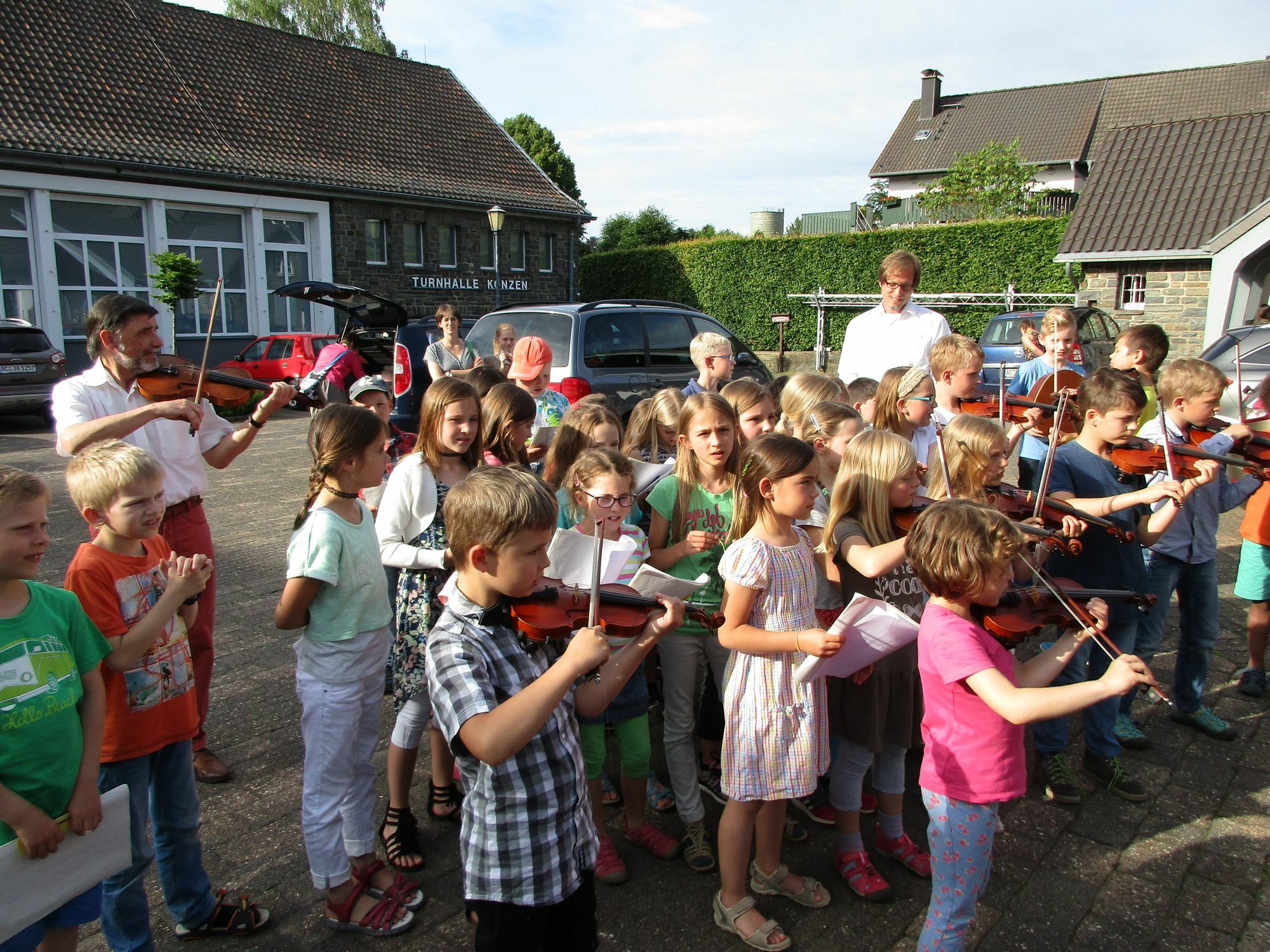 »Seit März erhielten die heute hier aufspielenden kleinen Instrumentalisten im ´Startprojekt Violine´ ihr Rüstzeug, in doppelter Gitarrenbegleitung und Gemeinschaft mit rund 30 singenden Altersgenossen zum ersten Mal vor großem Publikum aufzuspielen« , so Gäb. Der künstlerische Leiter erinnerte an den enormen Trainingsfleiß, den die Angehörigen die Formation bewiesen: »Mittwochs und samstags wurde geübt. Zudem scheuten mehrere Eltern nicht die regelmäßige Fahrt nach Aachen, zur zusätzlichen Weiterbildung an der Musikschule.« Uwe Gäb und Marcus Schops, der für das Lehrerkollegium der Konzen/Imgenbroicher Grundschule sprach, dankten »den kleinen Mitwirkenden, der Schulleitung, und Elternschaft, nicht zuletzt aber dem Rotary-Club Nordeifel, der heute mit seinem kürzlich gewählten Präsidenten Dr. Paul Ohlig, und Pressesprecherin Jacqueline Huppertz vertreten ist«. Selbstredend gaben Geiger, Gitarristen und rund 30 Jungen- und Mädchenstimmen ihres Chorkaders dem interessiert lauschenden Auditorium Kostproben frisch erworbenen Wissens und Könnens, kurz: ihr Bestes. Die sensibel einstudierte Programmischung kam im Saale bestens an, die Zuhörer waren von den Darbietungen der Junior-Interpreten mehr als angetan. Wenn auch Uwe Gäb am Keyboard abwiegelte: »Wir sind noch nicht fertig mit der Ausbildung. Aber es war schon ein tolles Konzert!«Weitere Nachrichten aus dem Altkreis Monschau
