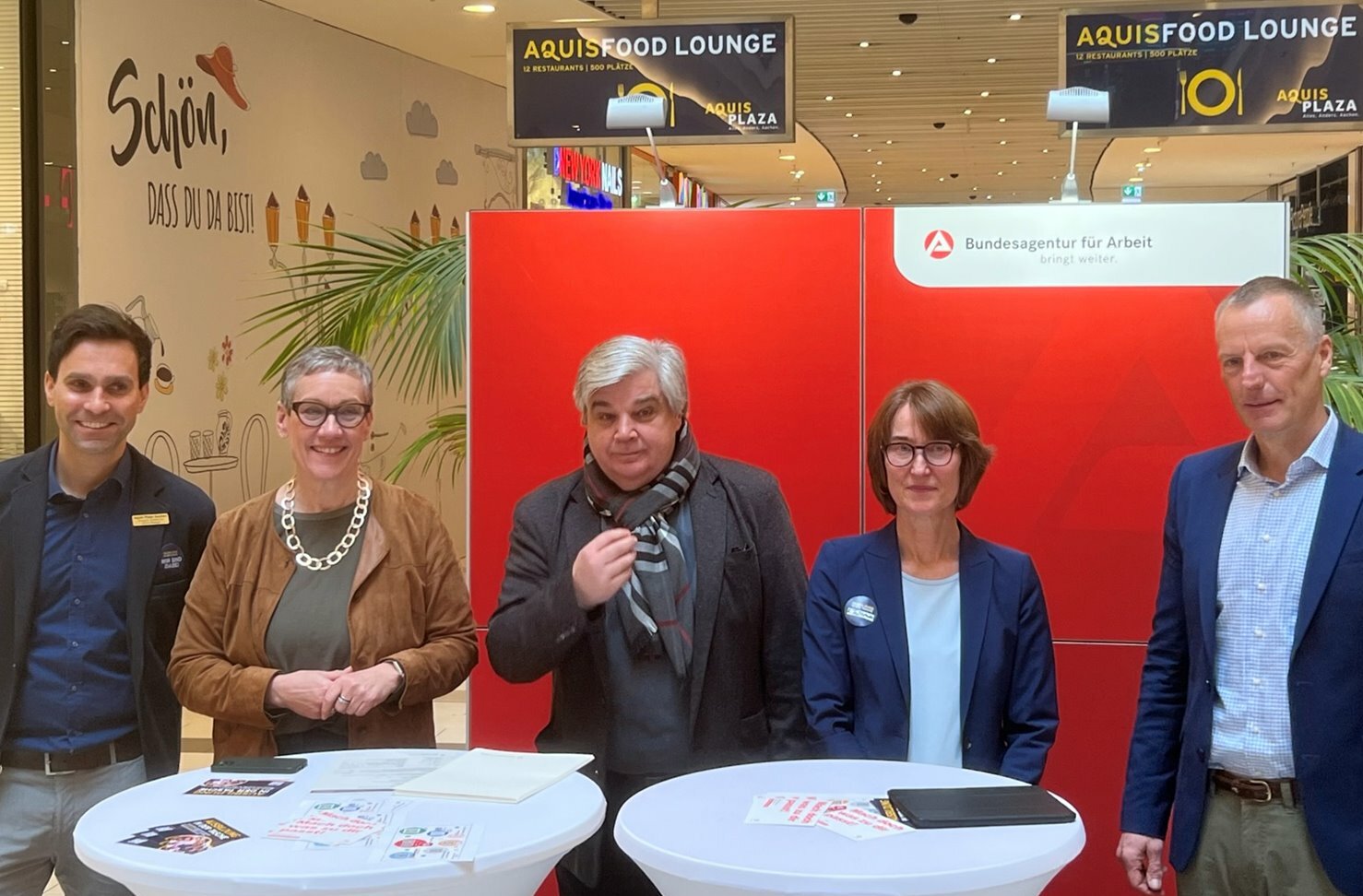 »Checke Deine berufliche Zukunft.« So werben Agentur für Arbeit, Industrie- und Handelskammer sowie Handwerkskammer in dieser Woche für einen Besuch der »Aquis Plaza«. Denn die Flaniermeile in der Kaiserstadt wurde als Standort gewählt, um mit potenziellen Auszubildenden ins Gespräch zu kommen.