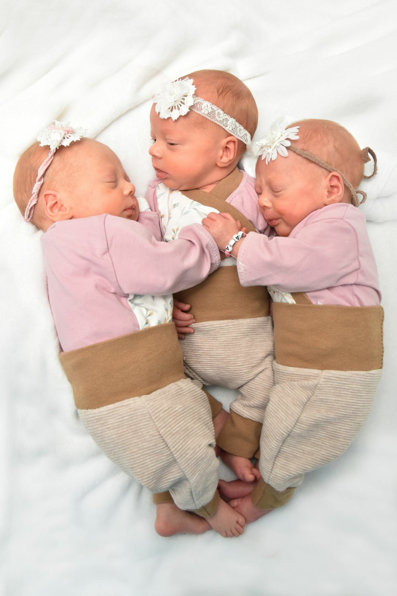 »Wir wollten mehrere Kinder - nun sind wir mit einer Geburt gleich fertig mit unserer Familienplanung«, schmunzelt Ann-Kathrin Bachem, Mutter der Drillingsschwestern. »Anfangs waren wir etwas schockiert, aber dann überwog doch rasch die Vorfreude auf unsere Kleinen«, ergänzt Alexander Bachem. Doch auch die Geburt selbst verlief nicht nach Plan. Als Frühchen kamen die Schwestern in der 31. Schwangerschaftswoche per Kaiserschnitt zur Welt. »Die Mädels brauchten teilweise Atemunterstützung, bekamen Ernährungsergänzung und wir haben mit zwei Milliliter Muttermilch angefangen - heute sind wir bei 80 Milliliter pro mahlzeit«, erinnert sich Alexander Bachem. Doch Bella, Celina und Dana entwickelten sich derart prächtig, dass sie nach fünf Wochen nach Hause durften. »Wir haben uns gegen ein Elternzimmer entschieden und ich bin nach vier Tagen entlassen worden - coronabedingt. Aber wir durften jederzeit dorthin - mit den Kleinen kuscheln und sie beim Wachsen begleiten, das war schön«, erinnert sich die 31-Jährige.