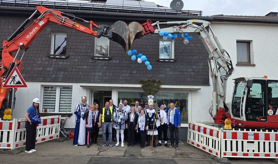 In Schmidt macht das neue Dreigestirn plus Mundschenk der KG Schmedter Grieläächer mächtig Furore: Prinz Sascha Breuer, Jungfrau Aaron Jansen, Bauer Pascal Strauch und Mundschenk Chris Beuel haben das Motto »Baggere, buddele on hantiere« proklamiert. Da geht nichts ohne Helm. Zu einem besonderen Treffen kamen es jetzt beim Haarstudio Pütz in der Monschauer Straße, in direkter Nachbarschaft zum »Schützenhof«, dem Vereinslokal. Hier wird nun schon im achten Jahr das Schaufenster gemäß dem Sessionsmotto dekoriert; da finden sich Schaufeln, Werkzeug und Helme. Und zwei Bagger standen pünktlich zum Termin vor der Tür!