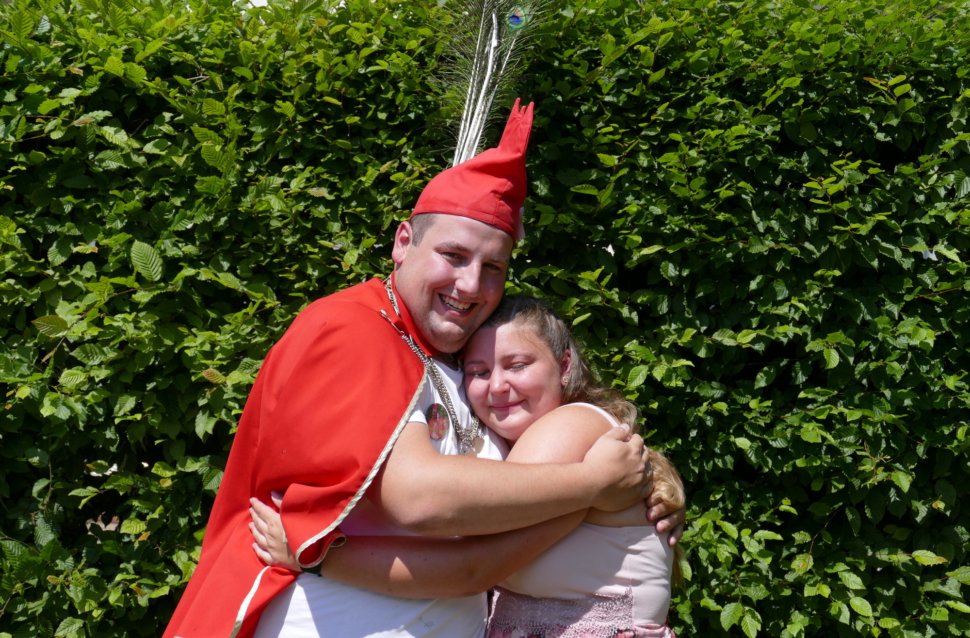 "Das wird eine richtige Hitzeschlacht", stellte Stephan Förster, Vorsitzender des Musikvereins und Moderator des Hahnenköppens, fest und freute sich über den großen Anklang des Hahnenköppens bei Jung und Alt. Mit dem insgesamt 42. Schlag machte Bene Conrads sodann dem Hahn den Garaus und wurde dafür vom begeisterten Publikum mit lauten Jubelrufen gefeiert. Sein Gefolge rund um seine Feuerwehrkameraden und seine Clique "Tiefflieger" verschwand indes und machte sich auf den Weg, um das "Schloss" des neuen Königs feierlich erstrahlen zu lassen. Währenddessen ließ sich der frisch gebackene Hahnenkönig von allen Kirmesbesuchern feiern.