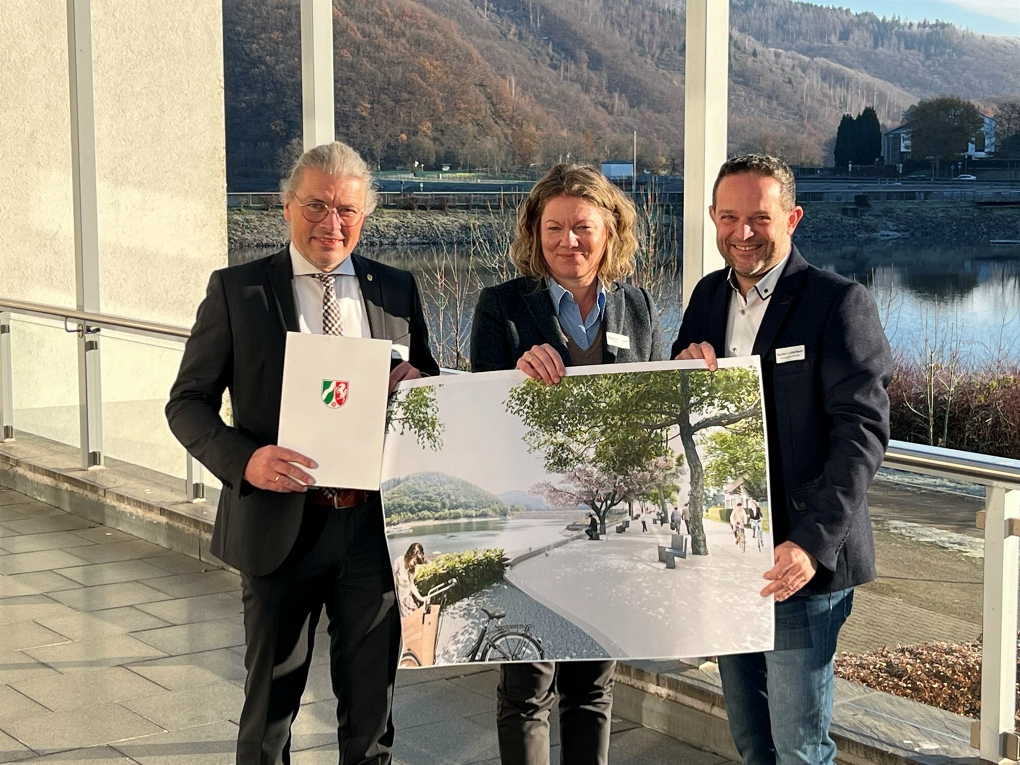 Rurberg (Fö). »Als touristischer Hotspot der Nationalpark-Region ist es uns besonders wichtig, die neue Rursee-Promenande in das natürliche Gesamtbild zu integrieren.« Simmeraths Bürgermeister Bernd Goffart freut sich auf das, was in den nächsten Jahren in Rurberg passieren wird. Und nicht nur er ist vom Konzept überzeugt, auch das NRW-Wirtschaftsministerium ist begeistert und bewilligte die größte Förderung für Tourismus im ganzen Land: 4.899,845,19 Euro fließen vom Land in Teil eins der »Weiterentwicklung der touristischen Infrastruktur« in Rurberg. In den nächsten beiden Jahren soll vom Eiserbachdamm aus entlang des Seeufers bis zur Straße »Grimmischall« eine Rursee-Promenade entstehen, die für eine hohe Aufenthaltsqualität sorgt.