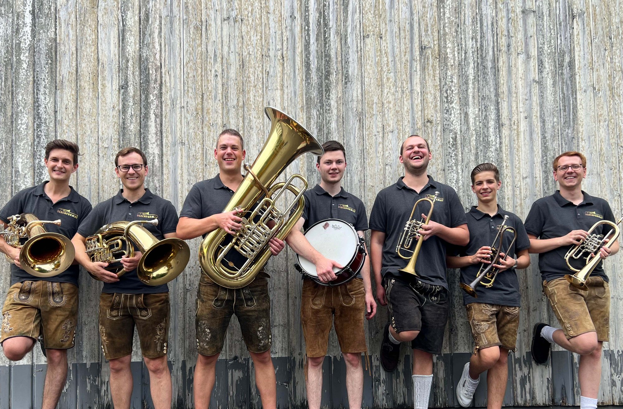 »Im Vorfeld unserer Auftritte - an Vatertag sind wir in Walsdorf zu erleben - treffen wir uns zur Probe. Aber das Grundgerüst hat jeder zu Hause erarbeitet«, weiß Cedric Hoch. Und Ansatz haben die drei Musiker an Trompete und Flügelhorn (Andre Moosmayer, Noah Hillinger und Cedric Hoch) gleichfalls wie das »tiefe Blech« bestehend aus Maximilian Müller und Nico Hoch sowie Tubist Matthias Krause. Komplettiert wird die Formation durch Schlagzeuger Felix Förster, dessen Heimatverein die »Lyra« Höfen ist.