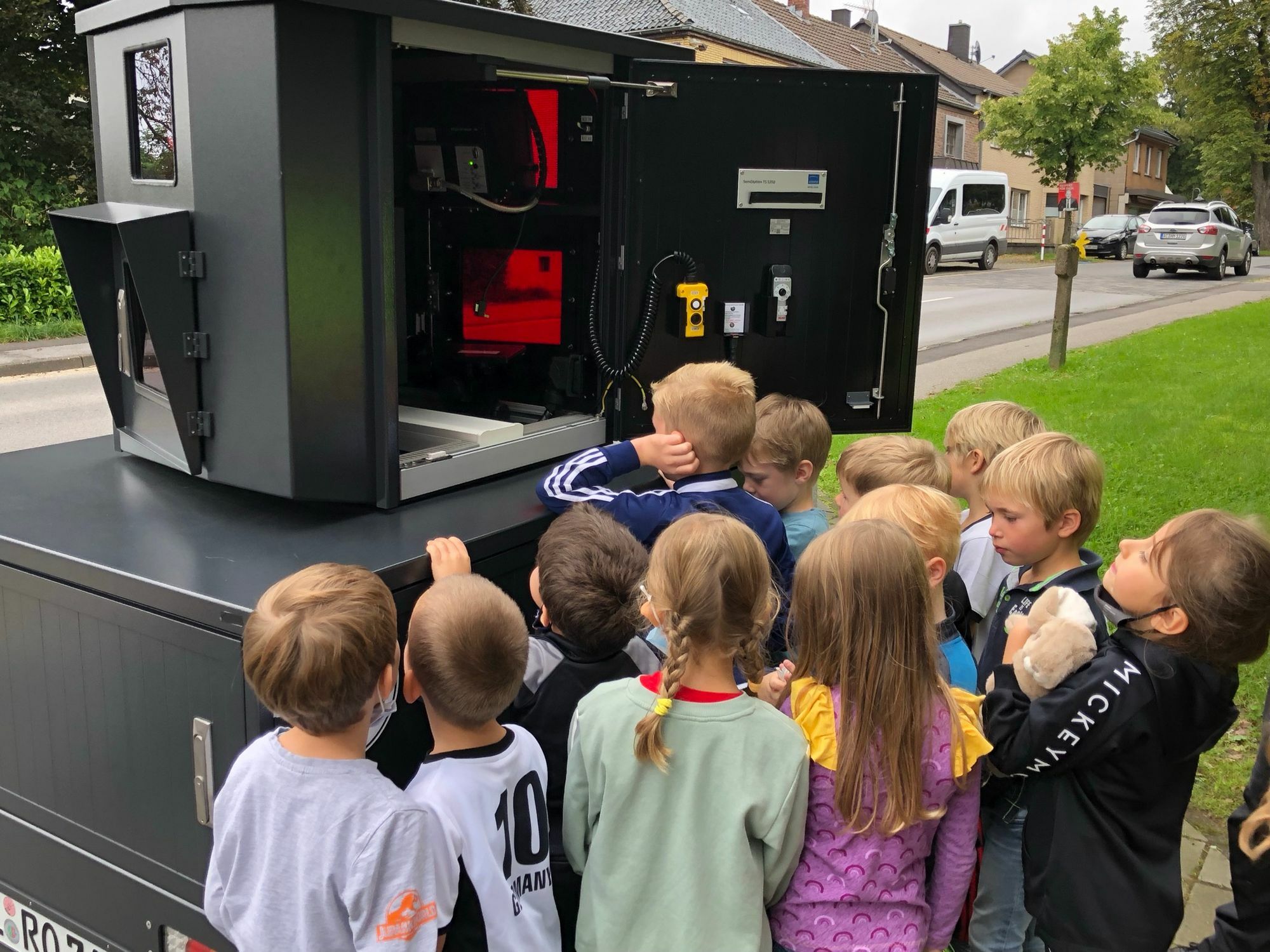 »Die Schule hat begonnen und damit steigt auch die Gefahr, der besonders die Neulinge im Straßenverkehr ausgesetzt sind«, so Susanne Bortot, Leiterin der Gemeinschaftsgrundschule Roetgen. Denn vor dem Bürgersaal in der Rosentalstraße hat die »mobile Blitze« ihre ersten Fotos gemacht. »Ich glaube, ich habe das Gerät eingeweiht«, scherzt ein Autofahrer im Vorbeifahren, der mutmaßt nur leicht zu schnell gewesen zu sein. Das Ergebnis erfährt er, wenn die Daten ausgelesen worden sind.
