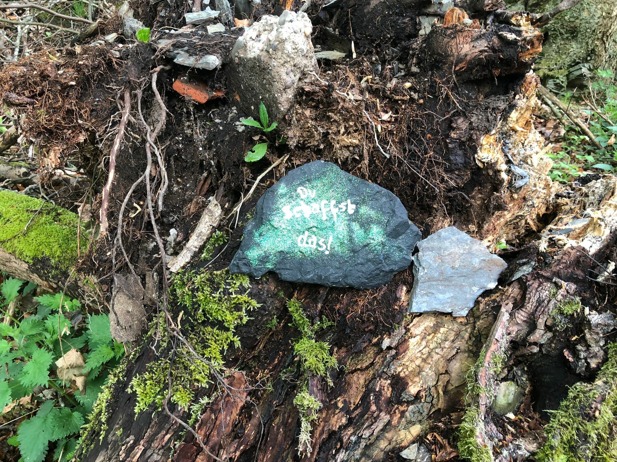 Kinder und Familien nehmen sich kleine Steine und bemalen sie zu Hause. Beim nächsten Spaziergang werden sie in der Natur ausgesetzt - andere finden diese und Gefallen daran, betrachten sie oder nehmen sie mit nach Hause. »Es sind fröhliche, helle Farben, gerade recht in diesen eigenartigen Zeiten«, stellt Gaby Winckler-Ullrich aus Eicherscheid fest, die mit ihrem Mann auf ihren Wanderungen immer wieder auf diese »Eifelsteine« stößt. Das sei schön und spannend zugleich, etwas Neues zu entdecken. Daher dankt sie stellvertretend den vielen eifrigen Künstlern für ihre bunten Steine. Auf Facebook gibt es eine Gruppe »Eifelsteine«, die bereits über 7500 Mitglieder aus der ganzen Eifel hat.