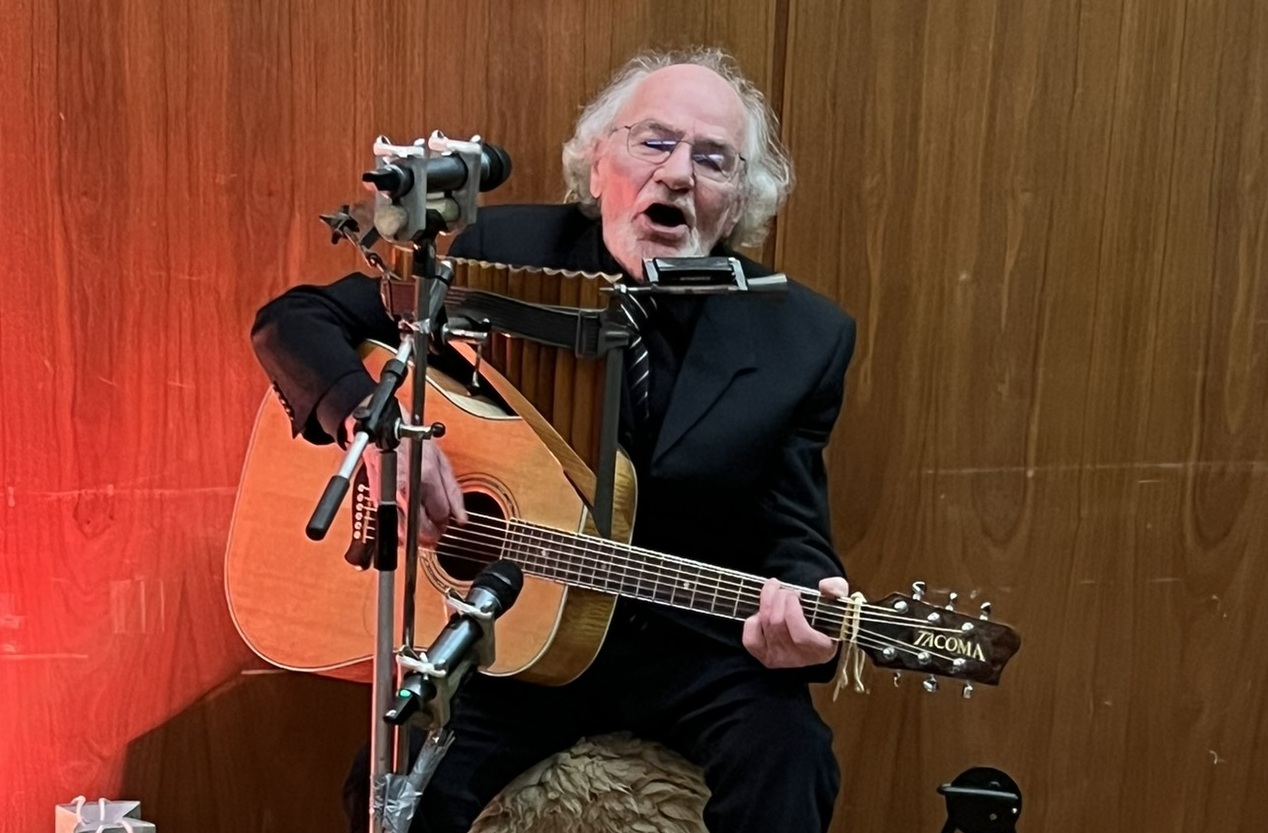 Es folgt die Übergabe der Ehrenurkunde, die im Hause Weiss erstellt wurde. Für einen kurzen Moment lässt sich der »singende Hirte« feiern, genießt es, als sich alle im festlich dekorierten Ratsaal von ihren Plätzen erheben und die Bürgermeisterin ihm ein Gästebuch überreicht, in dem sich alle Wegbegleiter verewigen werden. Kurz und knapp - wie gewohnt - dankt Reiner Jakobs seinen Helfern und für die Auszeichnung. Dann zieht es ihn auf seinen Hirtenstuhl, wo er die Gitarre ergreift und »Ein schöner Tag« erklingen lässt. Die Anspannung ist verschwunden, der »singende Hirte« ist in seinem Element...