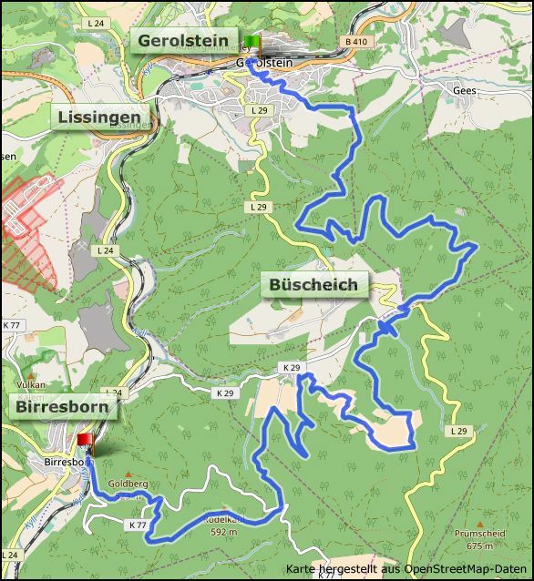 Wer die gesamte Strecke wandert, muss aufgrund der Länge einiges an Kondition mitbringen. NaturAktivErleben bietet allerdings auch eine attraktive Abkürzung an. Des Weiteren ließe sich diese Etappe auch gut in der Gegenrichtung gehen. Aus dieser Perspektive genießt man ebenfalls herrliche Blicke, in Michelbach wäre gut eine Einkehr möglich, der letzte Abstieg hinunter nach Gerolstein ist wunderschön, und in Gerolstein hat man die Qual der Wahl, wie man die Tour am schönsten ausklingen lassen möchte. Bei einer Ankunft in Birresborn sind demgegenüber die gastronomischen Optionen eher karg.
