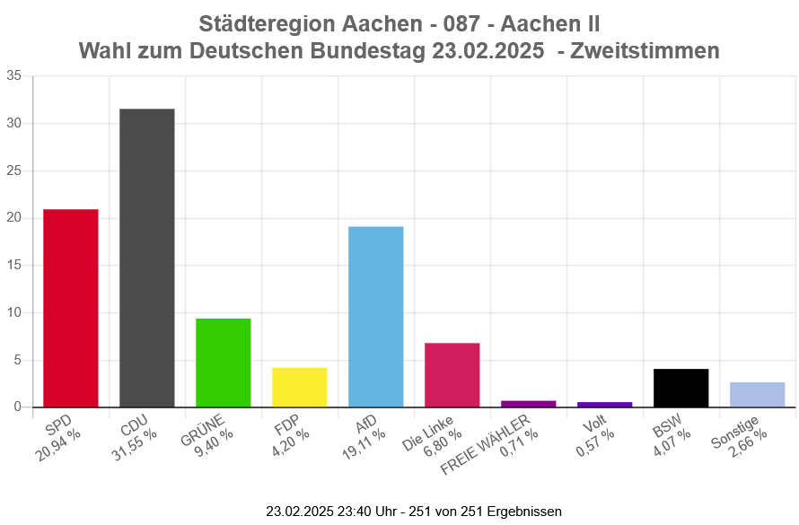 Erfreulich ist die Wahlbeteiligung, die in Monschau bei kapp 88%, in Simmerath bei 87% und in Roetgen gar bei 91% liegt.