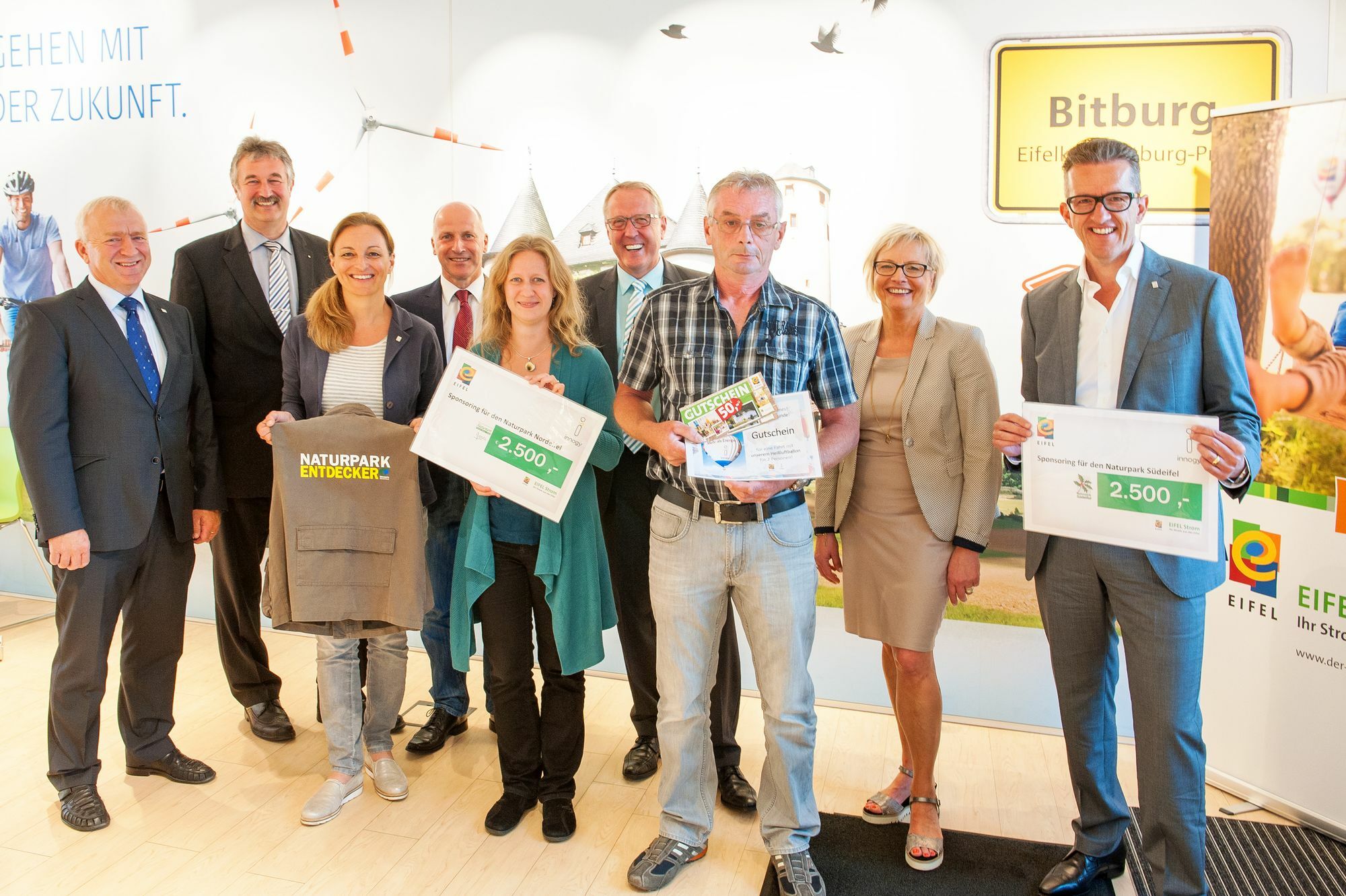 Der gemeinsame Ursprungsgedanke, mit dieser Kooperation zudem wichtige Naturschutz- und Nachhaltigkeitsprojekte in den Naturparks Nord- und Südeifel zu unterstützen, geht jetzt in die Umsetzung. Manfred Klasen übergab jeweils 2.500 Euro an den Verbandsvorsteher des Zweckverbandes Naturpark Südeifel und Landrat des Eifelkreises Bitburg-Prüm, Dr. Joachim Streit, sowie an den Stellvertretenden Vorsitzenden des Naturparks Nordeifel e.V. und Bürgermeister der Verbandsgemeinde Prüm, Aloysius Söhngen. Die Geschäftsführerinnen der beiden Naturparks, Daniela Torgau und Anne Stollenwerk, freuen sich, mit der Zusage ihre LEADER-Projekte »Naturpark-Kita« und »Naturpark Schule« weiter fördern zu können. So sollen unter anderem weitere Bildungsmaterialien zu Naturpark-Themen wie Natur, Kulturlandschaft und Heimatkunde angeschafft werden, wie die - mit zahlreichen Exkursionsmaterialien bestückten - Naturpark-Entdeckerwesten oder Streuobstwiesen-Rucksäcke.Eifelstrom