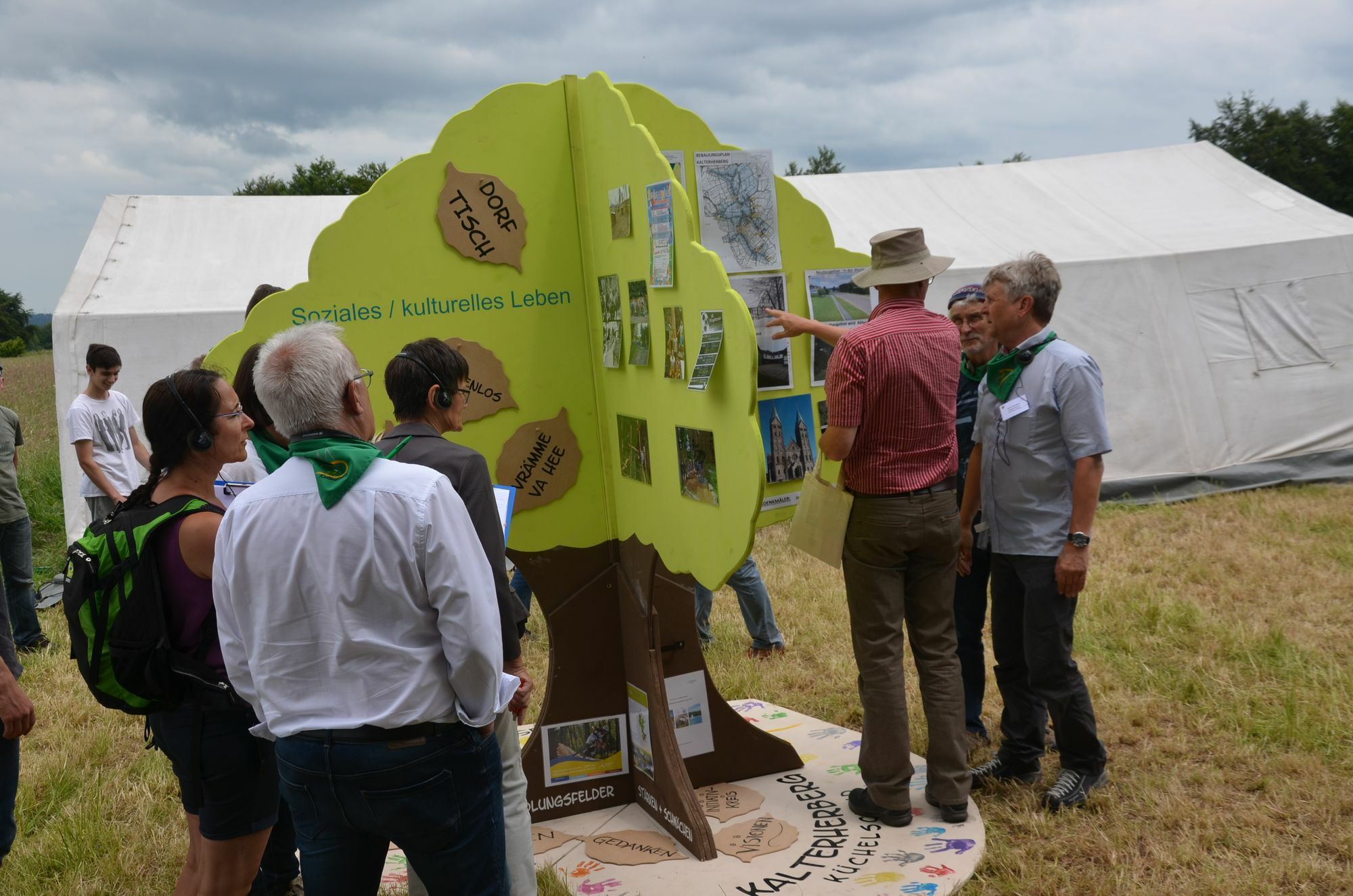 Im Nachmittag wurde die Delegation im touristischen Kleinod Simonskall empfangen. Als »Ureinwohner« erzählte Peter von Agris, dass sich das Örtchen im Generationswechsel befindet und die Führung manch gastronomischer Betriebe schon erfolgreich übergegangen sei. Außerdem wies er auf den Charme des Dorfes hin, der von Geborgenheit und Sicherheit geprägt sei. Mit Natur und historischen Bauwerken, aber auch Moderne wie der Mountainbikestrecke und dem Adventure-Golfplatz beeindruckte man die Jury. In Vossenack wurde besonders auf die ausgezeichnete seniorengerechte Infrastruktur hingewiesen und gerade das Altenheim im Geschwister-Louis-Haus vorgestellt. Eine weitere Besonderheit des Ortes ist der Lieferservice, den die Metzgereien und auch der Blumenladen anbieten. Die bestellte Ware wird an die Haustür geliefert. Auf dem Weg in die Aula der Grundschule kamen die Besucher auch am Freibad vorbei, das durch eine engagierte Bürgerinitiative vor der Schließung bewahrt werden konnte. Mit einem Flyer für Neubürger, der Bildung eines Jugendforums, Verzahnung der Vereine und den Erhalt der sozialen Infrastruktur stelle man sich zukunftssicher auf.Preisverleihung