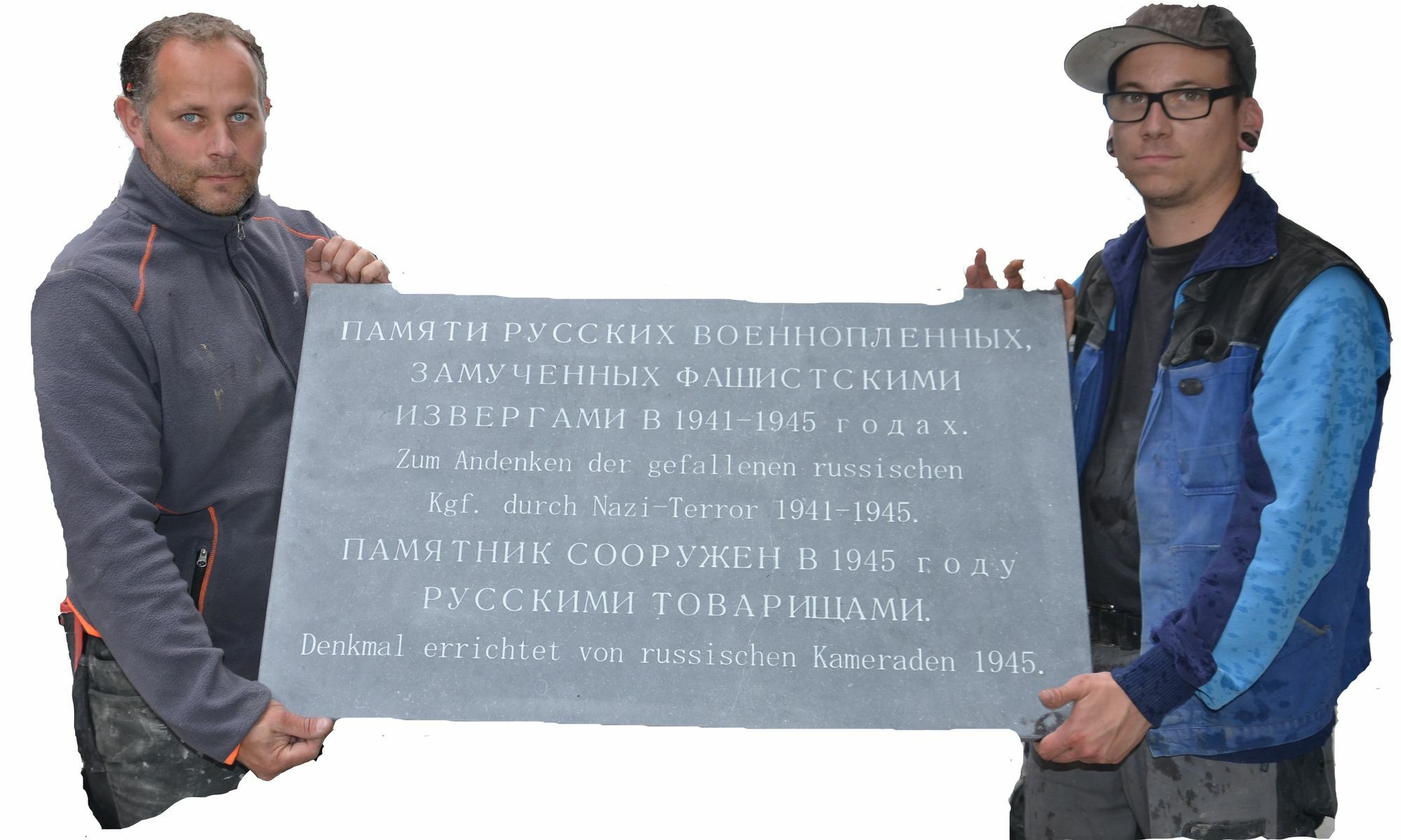 Auch eine 1945 von russischen Kameraden gefertigte Gedenktafel verschwand mit der Auflösung der Grä-berstätte und gilt bis heute als verschollen. Grund genug für den Kirchenvorstand in Schmidt, zu handeln und Steinmetz Mario Book mit einer Nachbildung der Tafel zu beauftragen. Alte Fotos existierten noch, so dass eine originalgetreue Reproduktion möglich war. »Zum Andenken der gefallenen russischen Kgf. durch Nazi-Terror 1941-1945. Denkmal errichtet von russischen Kameraden 1945«, ist - wie auf dem Original - in kyrillischer und deutscher Schrift zu lesen.