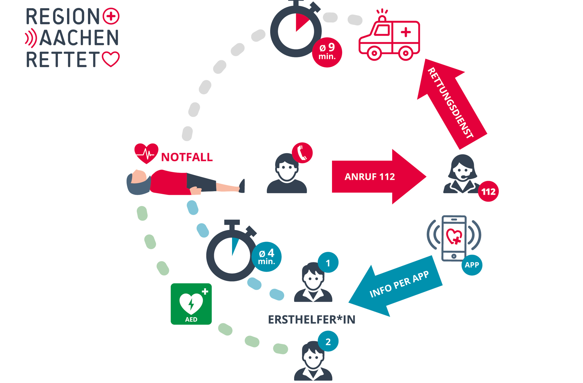 »Die bisherigen Erfolge der Initiative Region Aachen rettet zeigen, dass wir gemeinsam einen großen Beitrag für die Versorgung und Sicherheit der Bevölkerung leisten können«, resümiert Ulla Thönnissen, Geschäftsführerin der Region Aachen. »Die Menschen hier können als Ersthelfer in der gesamten Region aktiv werden oder die Initiative ergreifen und das AED-Netzwerk weiter ausbauen – oder beides. In Zukunft werden wir gemeinsam noch weitere Initiativen für den Rettungsdienst starten: Wir werden die Schulung von Ersthelfer ausbauen und gemeinsame Projekte zum Einsatz von digitalen Technologien testen. Region Aachen rettet ist ein gutes Beispiel, wie erfolgreich interkommunale Zusammenarbeit sein kann!«
