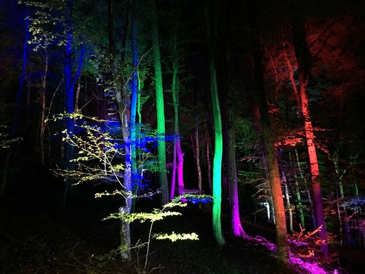 „Wir bieten unseren Besuchern im Herbst ein besonderes Licht- und Farberlebnis in der Eifelnatur. Die erstmalige Illumination unseres Eifelparks ist ein leuchtendes und farbenfrohes Spektakel für Klein und Groß“, bestätigt Nadine Löwenthal, Geschäftsführerin im Eifelpark. Seit dem Start von „Herbstleuchten im Eifelpark“ am 30. September haben sich viele Besucher von der leuchtenden Welt verzaubern lassen. Tausende Lichter und farbenfrohe Projektoren tauchen die Bäume, Sträucher, Wege und Attraktionen des Eifelparks in ein Meer aus Licht und Farben. Zahlreiche Lichtobjekte, fantasievolle Figuren und Effekte führen die Besucher in eine beeindruckende Open-Air-Kunstgalerie. „Wir lieben Licht. Es macht uns Spaß Licht und Farbe auf unterschiedliche Objekte einzurichten, um auch die charakteristischen Eigenschaften eines Parks herauszuarbeiten“, beschreibt Lichtkünstler Wolfgang Flammersfeld seine Arbeit. Der Eifelpark wird bis zum 15. Oktober jeden Abend von 18.30 bis 22 Uhr in den schönsten Farben und Formen erstrahlen. Ab 17 Uhr gilt ein Sondereintritt und die Kasse ist bis 21 Uhr geöffnet. Die Fahrgeschäfte können täglich bis 17 Uhr genutzt werden. Der Sondereintritt für das Herbstleuchten im Eifelpark beträgt für Besucher ab 150 cm: 8 Euro, von 100 bis 149 cm: 4 Euro und Kinder unter 100 cm haben freien Eintritt. Alle Besitzer einer Jahreskarte haben freien Eintritt. Weitere Informationen und das komplette Programm auf: www.eifelpark.com