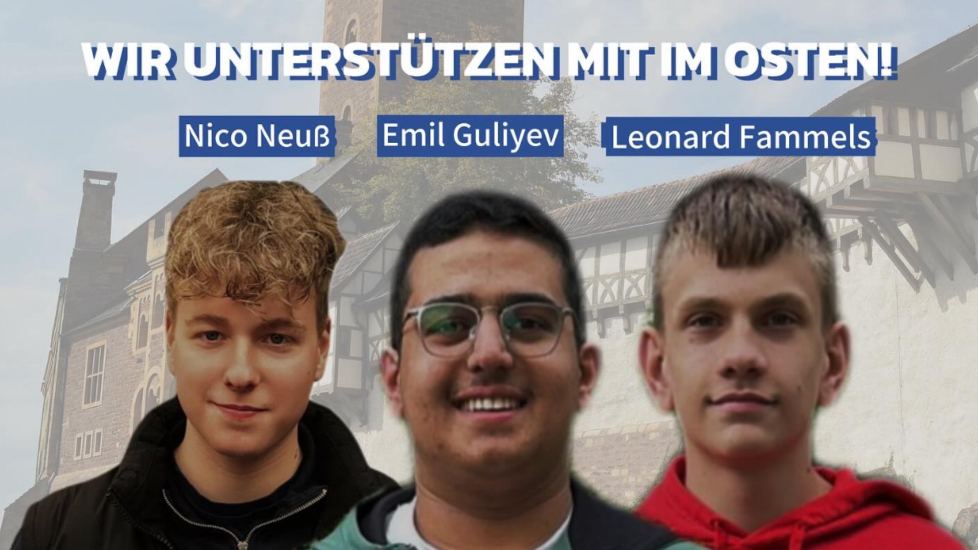 Die diesjährigen Wahlen im Osten Deutschlands, insbesondere in Thüringen, stehen im Fokus der politischen Aufmerksamkeit. Sie gelten als wichtige Entscheidung, die Auswirkungen auf die politische Ausrichtung der gesamten Region haben könnte. Vor diesem Hintergrund findet vom 17. bis 18. August 2024 der Unterstützertag und die Sommer JUniversity der Jungen Union in Thüringen statt. Auch die Junge Union Nordeifel wird mit drei engagierten Mitgliedern vertreten sein: Nico Neuß, Emil Guliyev und Leonard Fammels.