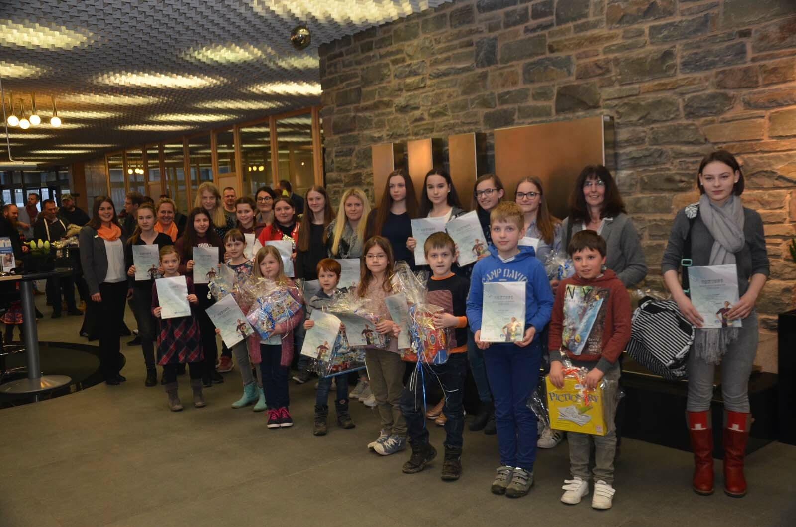 Simmerath (Fö). Die Raiffeisenbank Simmerath hatte Kinder und Jugendliche aller Schulklassen zum kreativen Wettbewerb aufgerufen und mit 123 Bildern und 91 Quizlösungen war die Resonanz überwältigend. »Wir haben uns sehr gefreut über die Vielzahl der Arbeiten, aber auch darüber, wieviel Mühe Ihr euch alle gegeben habt«, dankte »Jugendmarktbetreuerin« Sabine Berners den Teilnehmern. Gemeinsam mit Sarah Gohlke hatte sie die Qual der Wahl. »Ideen mit Wirkung« lautete die Aufgabenstellung für die Erst- bis Viertklässler. Sieger wurden Lea Setterich und Matthias Els. In den Klassen 5 bis 9 sollten die Teilnehmer zu Papier bringen, wie sie zu Problemlösungen finden. Am besten gelang dies Theresa Bensberg und Paine Schiffer. Aus den Jahrgangsstufen 10 bis 13 ging Julia Bongard als Siegerin hervor. Beste Quizlöser sind Magdalena David und Chiara-Sofie Bläser. Klassenpreise gingen an die Jahrgangsstufen 6 bis 10 der Monschauer Mädchenrealschule St. Ursula sowie die OGS der Grundschule Imgenbroich-Konzen. Alle Preisträger erhielten eine Urkunde, Spargeschenkgutscheine der Raiffeisenbank Simmerath und Sachpreise. Die Regionaljury bewertet die Bilder im April - die besten Einsendungen gehen in den Bundesentscheid. Und im Oktober startet der 49. Internationale Jugendwettbewerb unter dem Motto »Musik verbindet«.