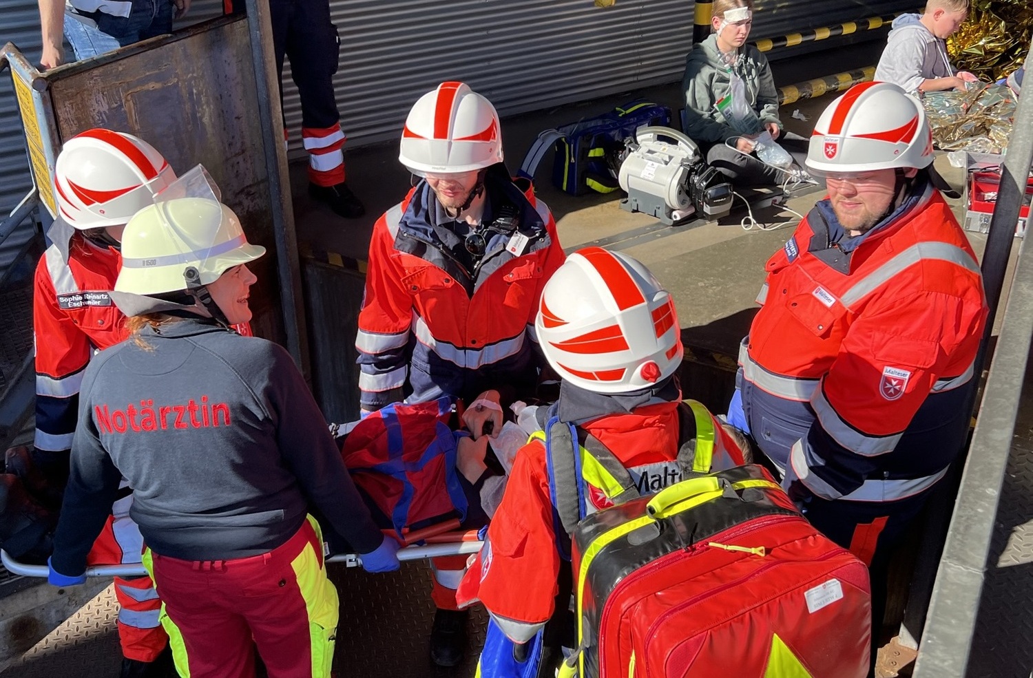 »Das extra für die Übung aufgestellte Szenario galt es gemeinsam im Team zu lösen und die Kommunikation zwischen dem Rettungsdienst und der Feuerwehr zu trainieren«, so Malteser-Pressesprecherin Rebecca Thelen, die selbst als »Opfer« im Einsatz agierte. Insgesamt 17 Patienten konnten geborgen und versorgt werden.