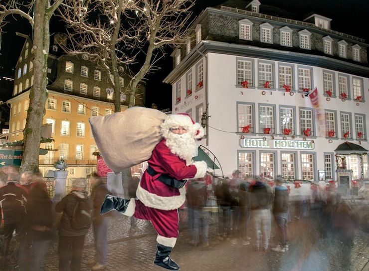 So mancher Besucher des Monschauer Weihnachtsmarktes wird sich verwundert die Augen reiben, wenn gleich ein ganzer Pulk von Nikoläusen zwischen Laufenstraße und Markt unterwegs ist. Grund dafür ist der »1. FUN-Nikolauslauf« des Rotary-Clubs Monschau-Nordeifel. Auch wenn es gilt, 2,7 km laufend, walkend oder gehend zurückzulegen, stehen Spaß und guter Zweck im Vordergrund. Der Start erfolgt zwischen 11 und 13 Uhr am Rathaus - die Teilnahme kostet 10 Euro, für Kinder 5 Euro. Sportlich ambitionierte können auch mehrere Runden absolvieren. Es erfolgen jedoch weder Zeitnahme noch Siegerehrung. Und wen es etwas länger auf dem Weihnachtsmarkt hält - kein Problem. Nikolauskostüme liegen bereit, können aber auch mitgebracht werden. Der Erlös kommt dem neuen »Kinderorchester Monschauer Land« zugute.
