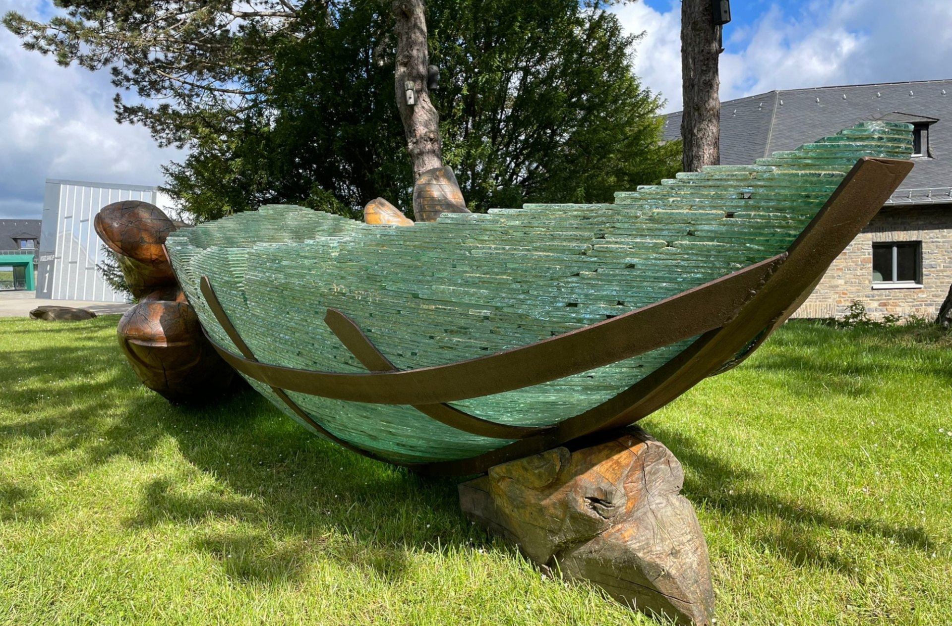 Vogelsang. Am Mittwoch feierte die Nationalparkverwaltung im Rahmen ihres 20-jährigen Jubiläums ein ganz besonderes Event: Den Glasarchentag. Im Mittelpunkt stand die beeindruckende Skulptur "Die Glasarche 3", die seit wenigen Tagen vor dem Nationalpark-Zentrum Eifel am Internationalen Platz Vogelsang IP aufgestellt ist. Das fünf Meter lange Kunstobjekt aus Glas und Stahl wird von einer kräftigen Hand aus Eichenholz gehalten. Es symbolisiert die Zerbrechlichkeit der Schöpfung und lädt dazu ein, sich mit den Gefahren für unsere Umwelt auseinanderzusetzen. Die Glasarche, die ursprünglich aus der traditionellen Glasregion Bayerischer Wald stammt, reist als Kunstprojekt quer durch Deutschland und bleibt nun bis zum 28. August am Nationalpark-Zentrum Eifel.