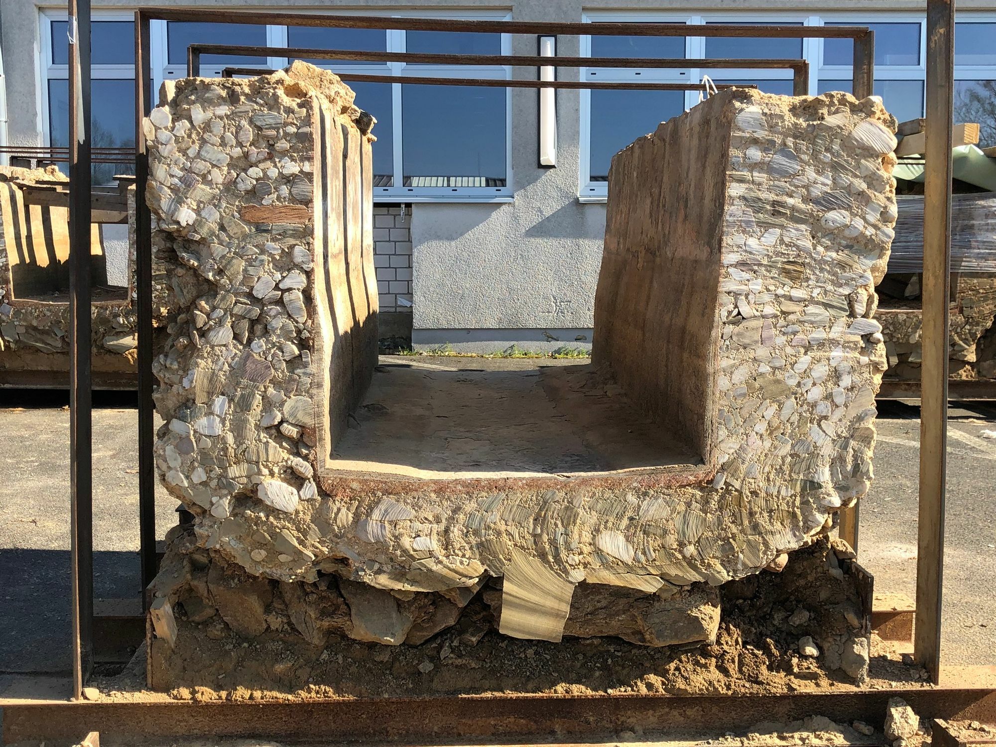 Vier Tonnen schwer und 2000 Jahre alt sind die etwas unförmigen Gebilde, die am Bildungszentrum abgeladen wurden. Es sind Teilstücke der alten römischen Wasserleitung, die 150 Jahre lang kostbares Eifelwasser nach Köln transportiert.