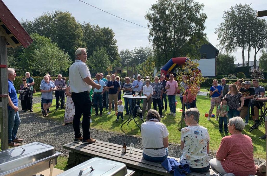 Die Wiesenfläche am Park wurde durch die Biologische Stadion angelegt und ist eine Brachfläche, die im Spätsommer erst gemäht werden darf. Das Gras wird dann nach traditioneller Art gemäht und bearbeitet, hierzu zählt auch das Heubocken wie es früher im Ort und in der Eifel üblich war. Der Vorsitzende Josef Melchior mit seinem Stellvertreter Josef Jakobs begrüßte bei strahlendem Sonnenschein ca. 250 Besucher. Zur Unterhaltung der Gäste spielte die Lyra Höfen mit einer starken Besetzung. Für die Kinder gab es eine Hüpfburg und einige Spielgeräte, die beste Spielplatz bei diesem Wetter war aber der Wassergraben als Zulauf zum Biotop. Die Bewirtung mit Speisen und Getränken erfolgte als Selbstbedienung, zur Bezahlung wurde eine Spendenbox aufgestellt.