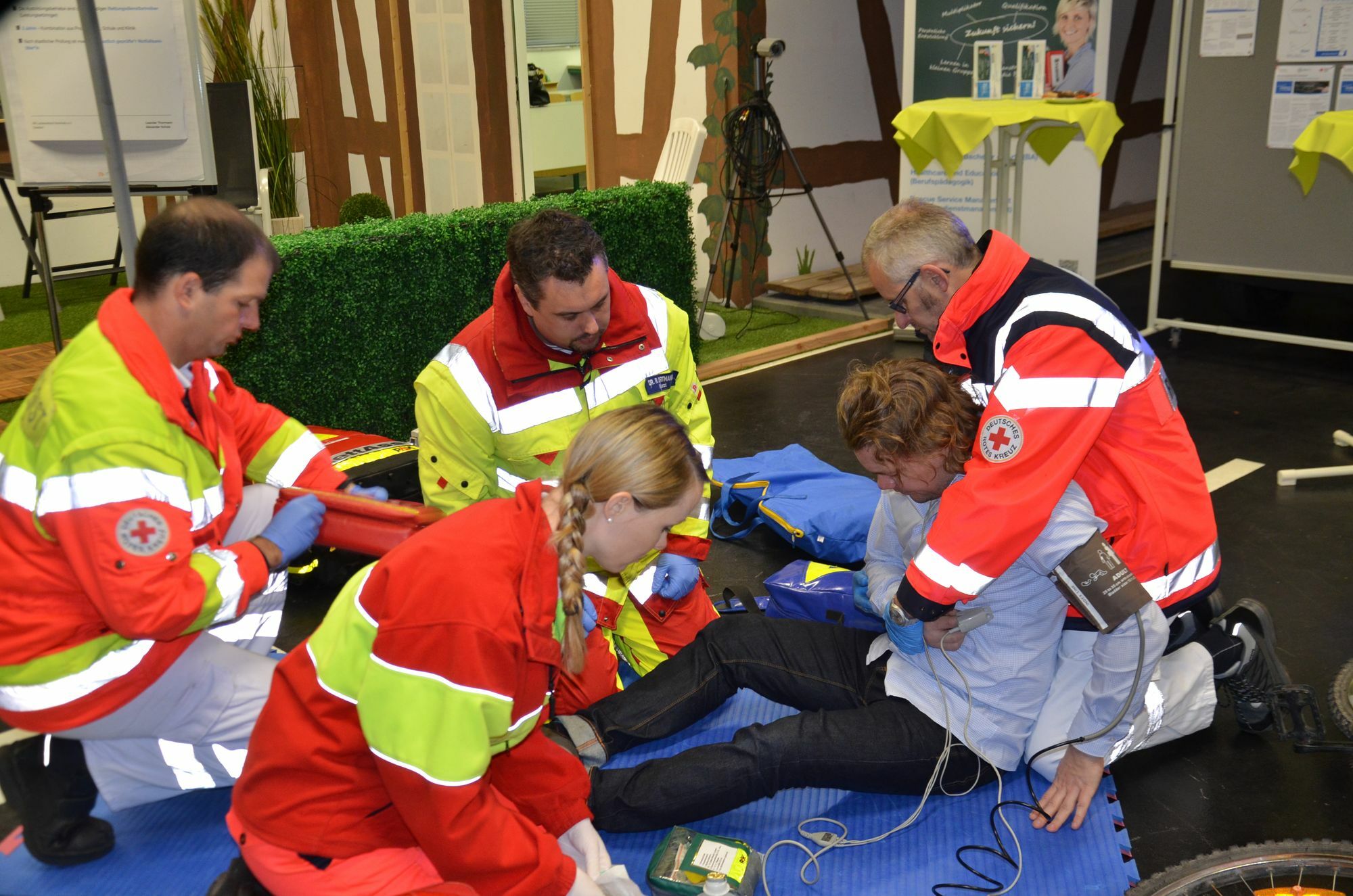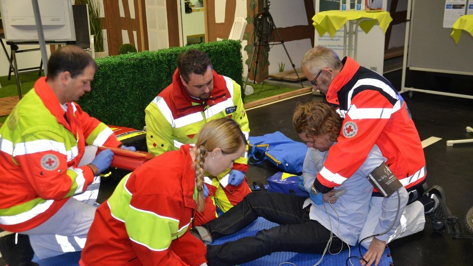 »Die Kompetenzen im Rettungsdienst werden steigen«, versichert Leander Thormann. So könne der gesamte Behandlungsablauf in der Notsituation optimiert, die Versorgungsqualität vor Ort sowie während des Transports gesteigert und damit Folgeschäden minimiert oder gar verhindert werden. »In der Praxis wirkt sich die gesetzliche Situation bei der Notfall-Versorgung und der beruflichen Qualifikation positiv aus«, erklärt Christine Scholl, Abteilungsleiterin der Landesschule Nordeifel in Simmerath. Voraussetzung dafür ist, dass peu á peu die Rettungsassistenten zu Notfallsanitätern fortgebildet werden. Das erste Dutzend Absolventen hat kürzlich die Prüfung an der Landesschule im Simmerather BGZ erfolgreich bestanden. »Je nach Berufserfahrung dauern die Kurse bis zu 960 Stunden«, erläutert der Schulleiter - daher sei die Gesetzesänderung nicht von heute auf morgen umsetzbar. Muss sie auch nicht: Erst 2027 sind ausschließlich Notfallsanitäter als Einsatzleiter auf dem Rettungswagen erlaubt. Der Fahrer ist auch dann ein Rettungssanitäter. »Es werden dann mehrere Hundert Notfallsanitäter alleine in Nordrhein-Westfalen benötigt«, sieht Thormann einen neuen, spannenden Beruf im Gesundheitswesen aufkommen. Etwa 4000 junge Menschen sollen jährlich qualifiziert ausgebildet werden. »Ein guter mittlerer Schulabschluss reicht«, versichert Thormann einen relativ leichten Einstieg. Es werden aber auch duale Studiengänge, Zertifikatlehrgänge oder berufsbegleitende Studien angeboten. Dazu werde mit der Steinbeis-Hochschule in Berlin kooperiert. »Die Menschen in der Nordeifel wissen sich bei Ihnen in besten Händen«, dankt Simmeraths Bürgermeister Karl-Heinz Hermanns der DRK-Landesschule für das große Engagement.