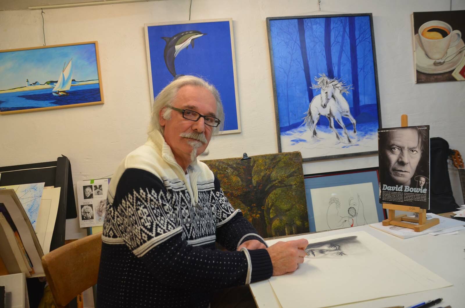 Pointillismus könnte man als Ursprung der digitalen Fotografie bezeichnen. Ein Bild entsteht aus einer Vielzahl an Punkten. Wie das gelingt, das zeigt Künstler Antonio Furlan den Schülern in seinem Atelier in Vossenack. Vossenack (Fö). Mehrere Stunden täglich verbringt der 64-jährige Rentner mit Malen und Zeichnen. Die Leidenschaft, sich künstlerisch zu betätigen, hat ihn schon als Schulkind im italienischen Gorizia gepackt. Doch erst nachdem er 1971 nach Deutschland kam, erlernte er die künstlerischen Techniken und Tricks in der Malerei. »Meine Schwerpunkte liegen im Bereich Kubismus und Porträts von Tiere und Menschen«, erklärt Antonio Furlan. Freie Wahl Dabei arbeitet er mit unterschiedlichen Materialien wie Acryl - und Aquarellfarben, Buntstiften, Kreide oder Tusche. »Auch meine Schüler sind frei in der Wahl von Motiv und Technik, Format und Material«, unterstreicht der Künstler, der Kurse in seinem Haus, Stockberg 10, in Vossenack anbietet. Getreu dem Doppelmotto »Jeder Mensch ist ein Künstler oder jeder Künstler ist ein Mensch« will Furlan seine Mitstreiter fördern und fordern und sie auf ihrem Kenntnisstand abholen. »Zu mir kann jeder kommen, der sich für Zeichnen und Malerei begeistert«, versichert Furlan. Ob blutiger Anfänger, Fortgeschrittener oder Künstler, der einfach einmal eine neue Technik oder Stilrichtung erlernen will - bei Antonio Furlan sind sie ab etwa acht Jahren genau richtig. »Die Schüler sollten Zeit und Geduld, Fantasie und Begeisterung für die Kunst mitbringen«, so der Maler und Zeichner. Schließlich entstehe ein Bild nicht in kurzer Zeit, sondern sei ein Ergebnis vieler kleiner Schritte und eines kreativen Prozesses. Um sich selbst stetig weiter zu entwickeln und den Kritikern seiner Arbeiten zu stellen, beteiligt sich Antonio Furlan regelmäßig an Ausstellungen mit anderen Künstlern, etwa im Hürtgenwalder Rathaus oder bei der Aktion »Kunst aus der Eifel« im Einruhrer Heilsteinhaus. Eine Kursgruppe umfasst maximal fünf Personen. Kontakt Weitere Infos gibt es unter Tel. 02429/902152, per E-Mail an kunstatelier.furlan@gmx.de oder im Internet: www.kunstatelier-furlan.de