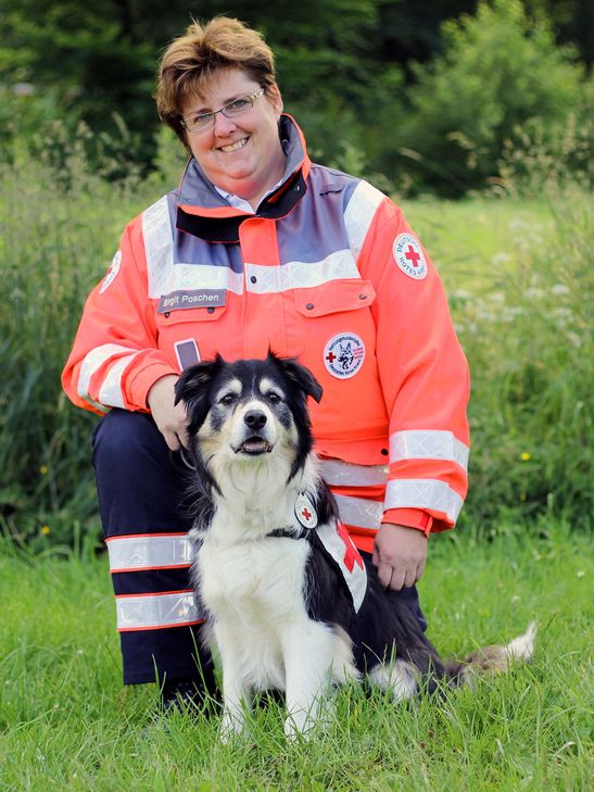 Unter den Einsatzkräften auch die Konzenerin Birgit Poschen mit der dienstältesten Hündin der Rettungshundestaffel, der elfjährigen Border-Collie-Hündin »Jessie«, die schon nach einigen 100 Metern den vermissten Senior in einem nicht einsehbaren Bereich aufgespürt hatte. »Man konnte den Mann vom Weg aus im hohen Gras nicht sehen«, berichteten die Einsatzkräfte. »Das ist genau die Stärke der Hunde: Sie suchen nicht mit den Augen, sondern mit ihrer feinen Nase«, erklärte DRK-Einsatzleiterin Julia Tiede.