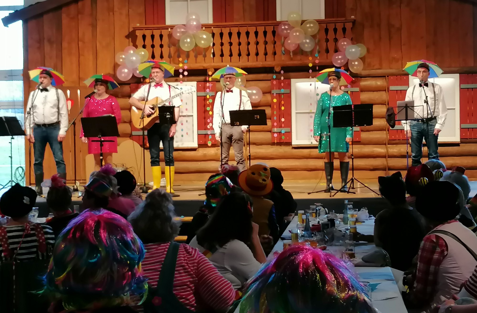 Ein buntes Programm wartete auch in diesem Jahr auf die Damen in Eicherscheid. Bereits beim Start mit dem „janz normalen Jeck“ waren die Frauen super drauf. Das weitere Programm mit der Wallfahrt nach Kevelar, den Simm-Girls, Annemarie und ihrer Waage und den „Sängerknädels“ aus Mützenich wurde die Stimmung noch ausgelassener. Das Highlight des Tages war wieder einmal das Gastspiel von „Volljaas“, bevor nach den bunten Programm der Sonnenfunken Simmerath ein vollauf begeistertes Publikum den Heimweg antrat.