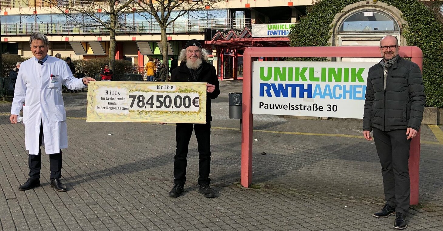 »Das ist klasse, dass Sie und Ihre Familie sowie die ganze Region an uns denkt und uns seit so vielen Jahren prima unterstützen«, bedankt sich Prof. Dr. med. Udo Kontny, Leiter der Kinderkrebsstation der Uni-Klinik Aachen bei Reiner Jakobs.