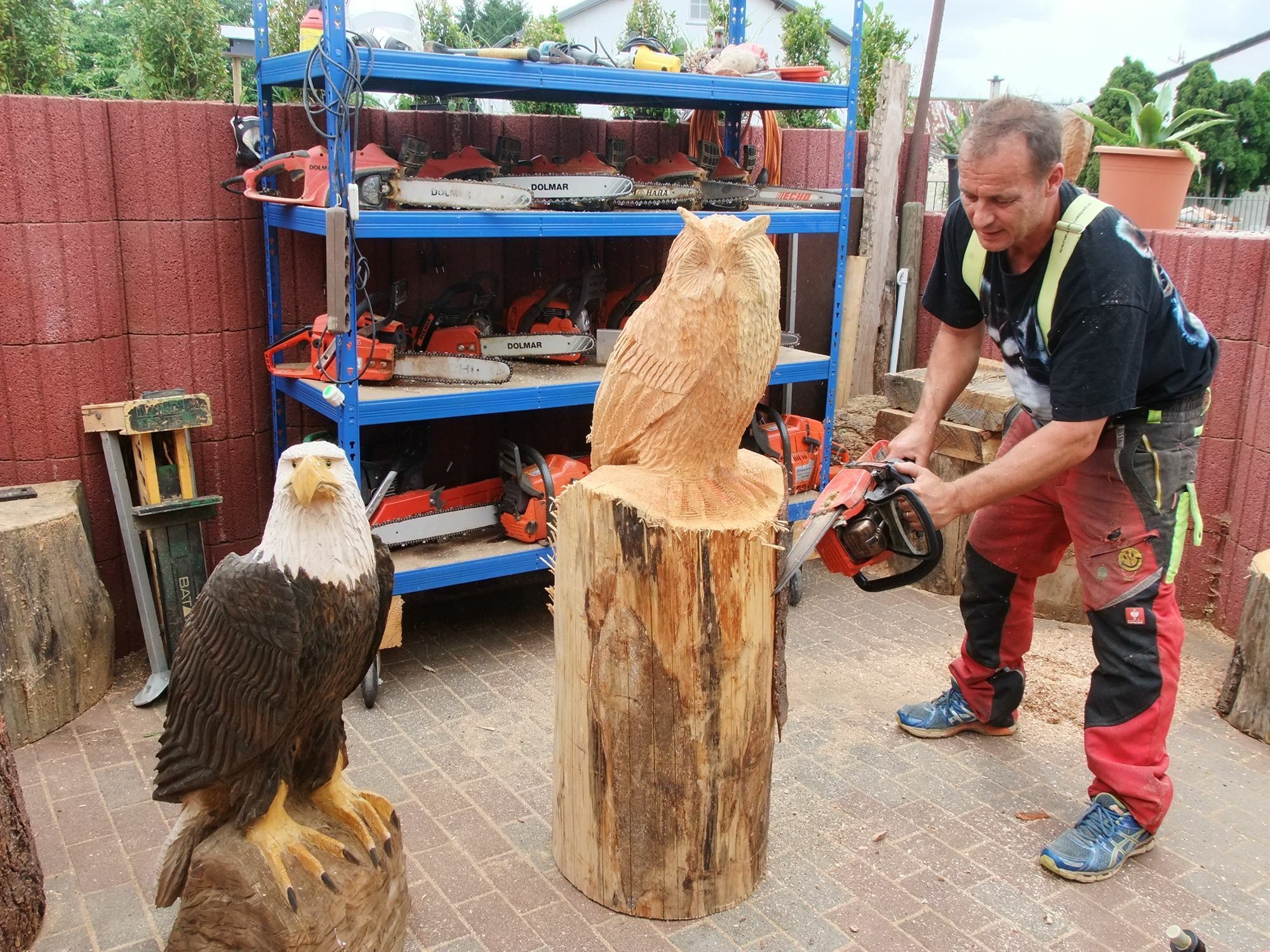 Und immer, wenn er eine seiner Sägen sprechen lässt, entstehen mit ganz viel Liebe zum Detail wahre Kunstwerke aus Holz. »Ich bin viel besser geworden«, freut sich der Perfektionist und zeigt stolz einen naturgetreu nachgeschnitzten Adler, der sein Freiluftatelier ziert.