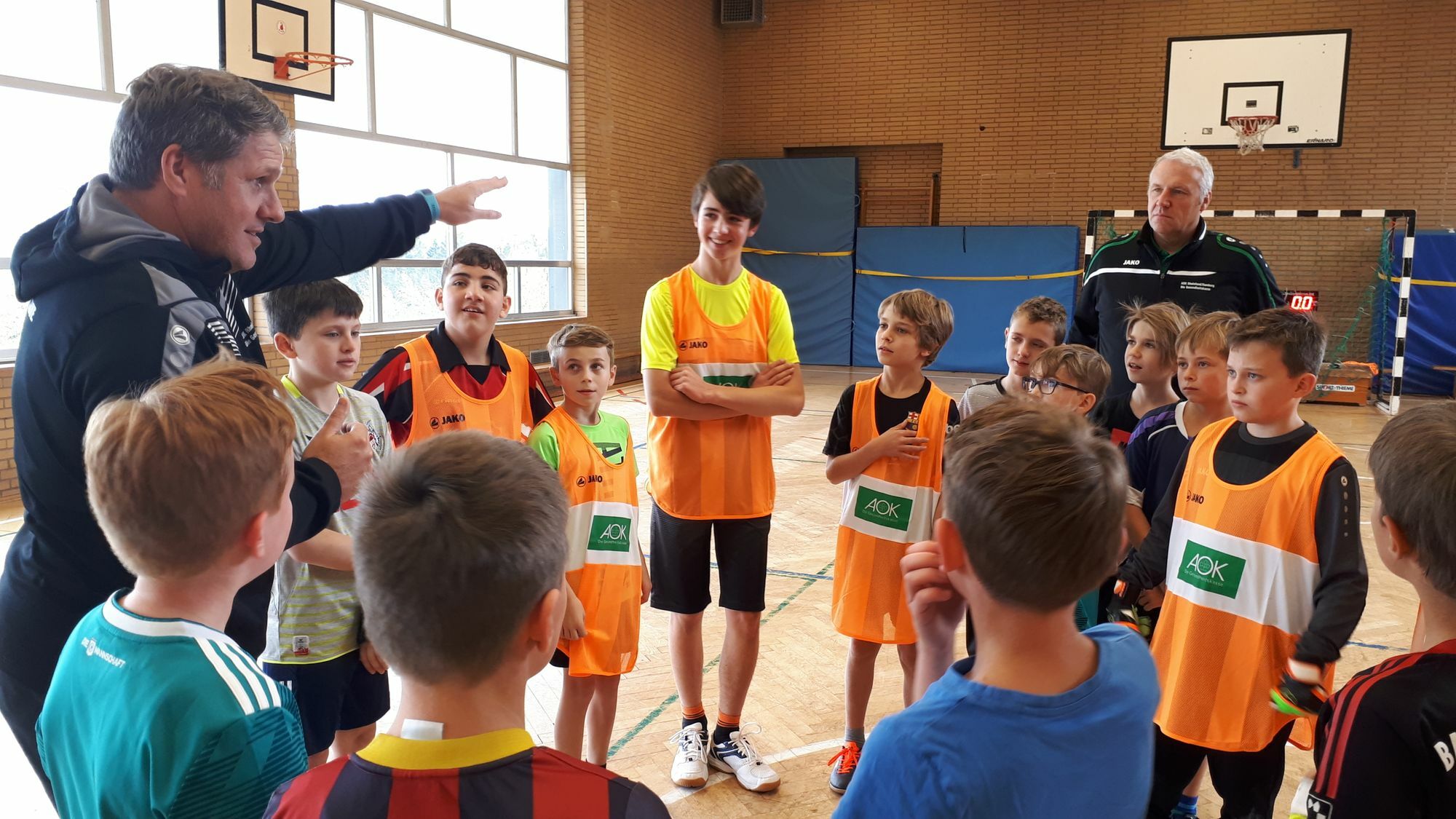 Während in Aachen gefeiert wurde, kamen 60 Schüler des FGV in den Genuss, von ehemaligen Profifußballern trainiert zu werden. »Fit durch die Schule« heißt die Initiative des NRW-Ministeriums für Schule und Bildung sowie der AOK Rheinland/Hamburg, die zum Ziel hat, die außerunterrichtlichen Sportangebote für die Schüler der weiterführenden Schulen zu fördern und auszubauen. In diesem Rahmen erhält das Gymnasium in Vossenack Projektförderungs-Mittel. Die beiden ehemaligen Bundesligaprofis Marcel Witeczek und Michael Klinkert waren in Vossenack zu Gast und verrieten den jungen Nachwuchskickern so manche Tricks für das Spiel mit dem runden Leder.Die Aktion soll die Motivation zum regelmäßigen Sport treiben nachhaltig fördern und insbesondere auch zu möglichst dauerhaftem Engagement der Schüler in Sportvereinen führen.