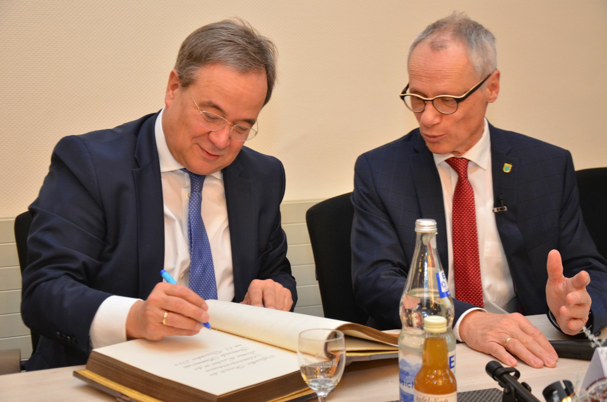 "Nordrhein-Wesfalen hat viele schöne Regionen - nicht umsonst lebt jeder zweite Bürger auf dem Land. Und wenn man sieht, wie sich ländliche Kommunen wie Simmerath entwickeln, dann ist das auch nicht verwunderlich." NRW-Ministerpräsident Armin Laschet war bei seinem Besuch in der Rursee-Gemeinde angetan von dem, was Bürgermeister Karl-Heinz Hermanns Positives zu berichten wusste.