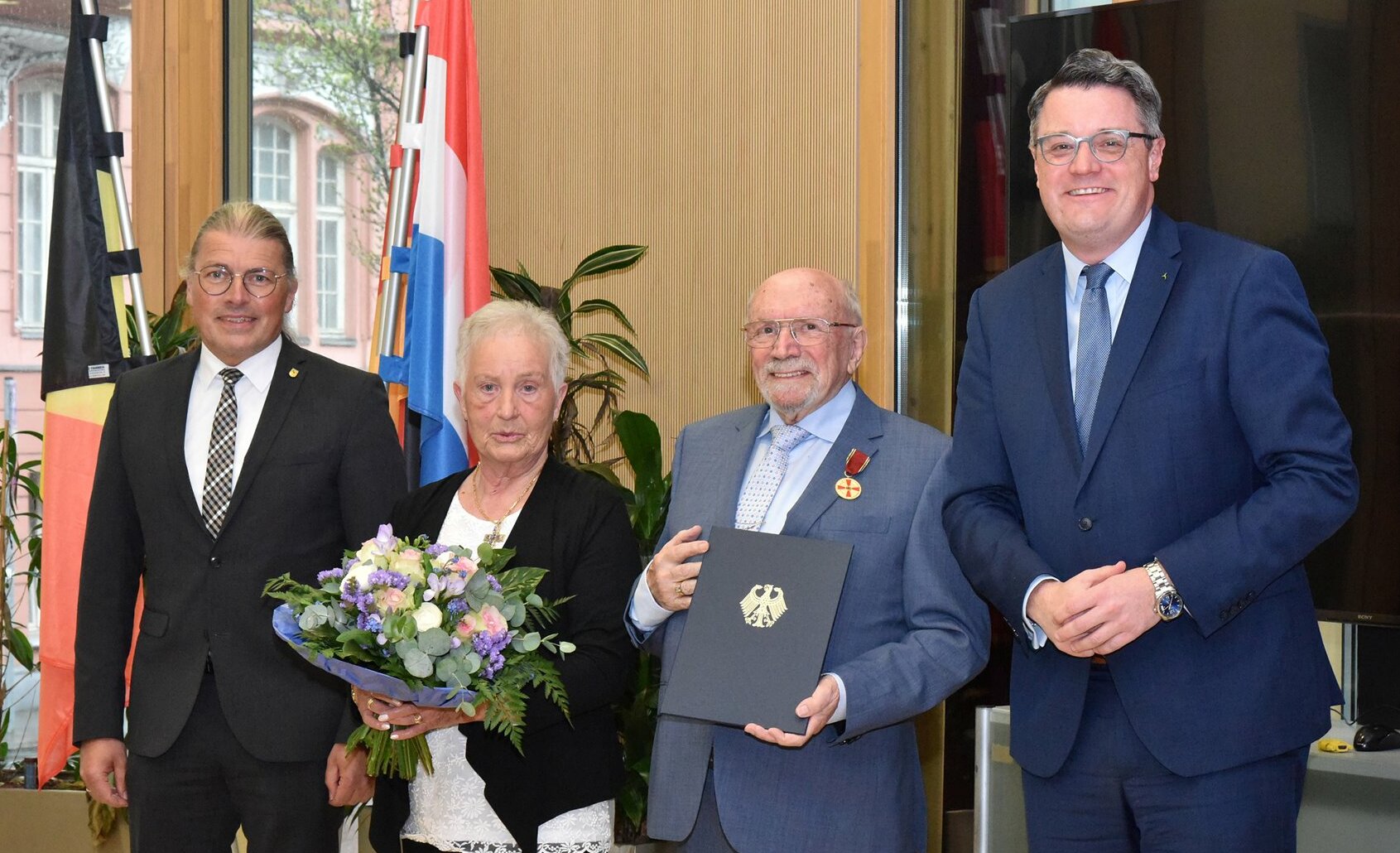 »Ihr jahrzehntelanges ehrenamtliches Wirken - vor allem im sozialen Bereich - steht unter zwei großen Leitlinien: Helfen und Handeln.« Dafür durfte Städteregionsrat Dr. Tim Grüttemeier Heinrich Poschen mit der Verdienstmedaille des Verdienstordens der Bundesrepublik Deutschland auszeichnen.