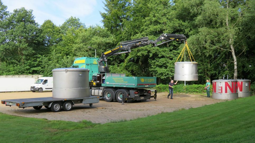 Kürzlich sind sie per Kranwagen verladen und zum neuen Standort bei der Werkfeuerwehr des Köln-Bonner Flughafens verlegt worden. Dort sind auch die Hubschrauber der Bundeswehr stationiert, mit denen sie transportiert werden können. Diese sind somit im Fall der Fälle schneller am jeweiligen Einsatzort. Jeder Löschwasserbehälter fasst etwa 5.000 Liter. Das entspricht je Behälter dem Inhalt von rund 36 handelsüblichen Badewannen.