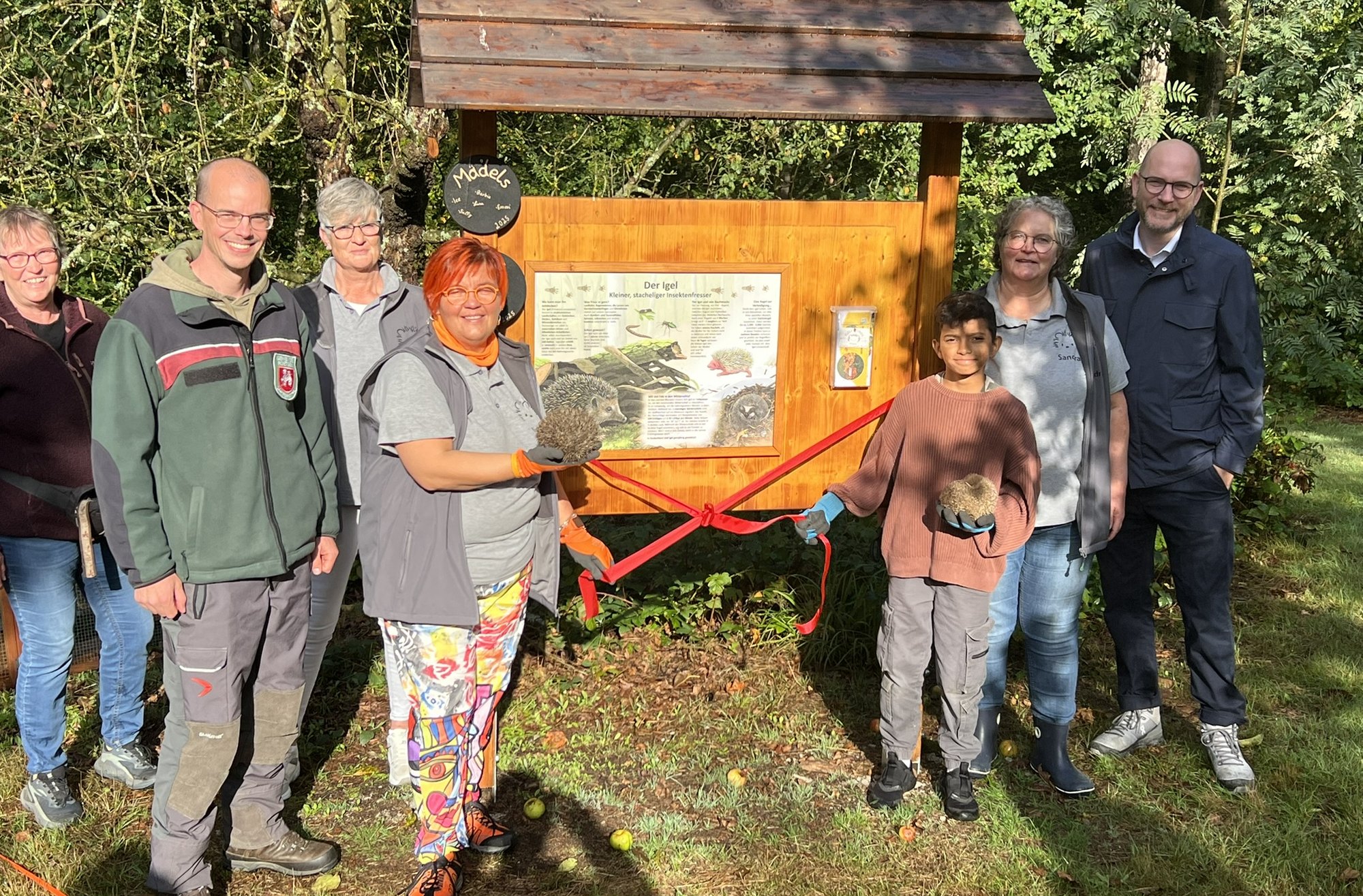Eine informative Schautafel, die Roetgens Gemeindeförster Tobias Elbert realisiert hat, fasst die wichtigsten Informationen für den Umgang mit Igeln, deren Lebensweise und Nahrungskette zusammen. »Wenn Ehrenamt und Hauptamt so gut zusammenarbeiten und einen Mehrwert für Menschen, Flora und Fauna in Roetgen schaffen, freut mich das besonders«, lobt Bürgermeister Jorma Klauss die Initiatoren.