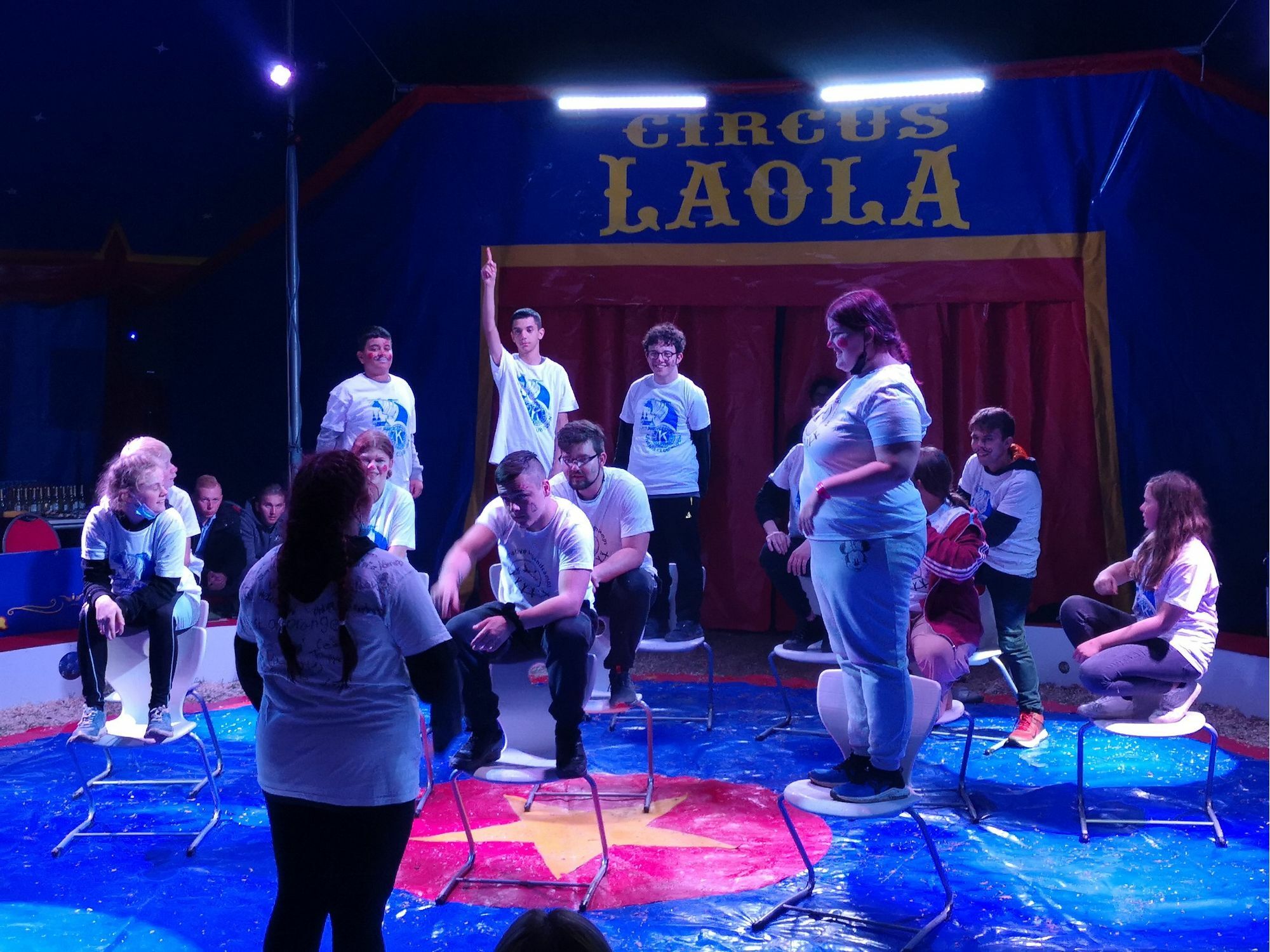 Der Verein zur Förderung von Integrativen Jugendcamps hatte eine illustere Gästeschar aus zahlreichen Vertretern der städteregionalen Kommunen und Kooperationspartnern zu einer Zirkusvorstellung der besonderen Art geladen: Georg Suchotzki und Organisatorin Uschi Brammertz, die Geschäftsführerin des Vereins, kündigten voller Begeisterung das Programm des Ersten Integrativen Zirkus-Jugendcamps an. Fünf Tage hatten über 50 Jugendliche aus der Städteregion aber auch aus den Niederlanden und Ostbelgien auf dem Gelände Sekundarschule Simmerath ihre Zeit verbracht, um dann ihr Können im Zelt vom Zirkus Laola zu präsentieren.