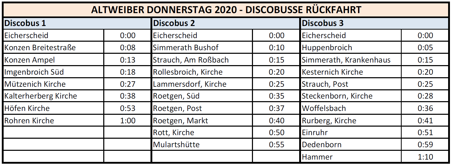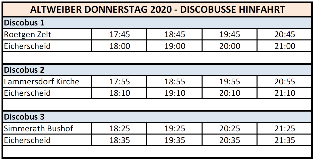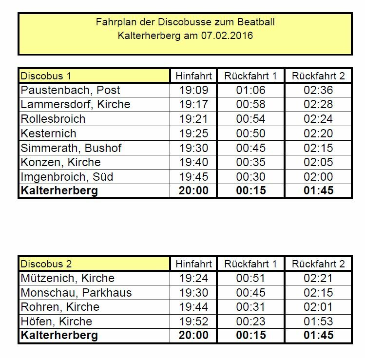 Denn der Einsatz des Discobusses ist in den letzten Jahren immer weiter zurückgegangen. Fuhr er in Spitzenzeiten alleine die Eicherscheider Tenne zu einem Dutzend Jugendfeten im Jahr an, sind nur noch der Altweiber-Beatball dort und die Karnevalsfete am Tulpensonntag in der Kalterherberger Vereinshalle übrig geblieben. Eines vorweg: Auch in diesem Jahr bringt die DB Bahn Rheinlandbus Narren wieder sicher zum Feiern und nach Hause. Am Altweiber-Donnerstag, 20. Februar, fahren die Discobusse jeweils viermal zwischen 17.45 und 21.30 Uhr von den Veranstaltungen in Roetgen, Lammersdorf und Simmerath zur Tenne nach Eicherscheid. Die Rückfahrt startet um Mitternacht und führt in alle Orte der Kommunen Monschau, Roetgen und Simmerath. »Wir haben dieses Konzept gemeinsam mit dem Busbetrieb erarbeitet, denn eine sichere Hin- und Rückfahrt für unsere jungen Gäste ist uns besonders wichtig«, unterstreicht Jochen Jansen von der Vereinsgemeinschaft Eicherscheid GbR. Für Unterhaltung sorgt wie gewohnt die »Endstation´88«. Auch zum Beatball in Kalterherberg am Karnevalssonntag, 23. Februar, sind die Discobusse der RVE im Einsatz. Zwei Busse bringen die Narren zur Veranstaltung. Die Rückfahrten finden um 0.15 Uhr und 1.45 Uhr statt.Kosten solidarisch verteilen