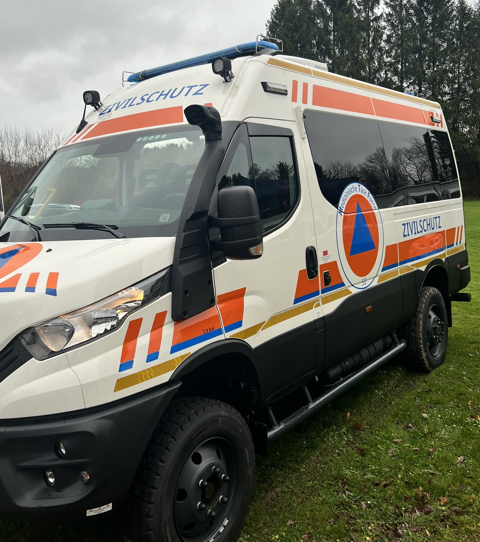 Simmerath (Fö). Mit einem 200.000 Euro teuren Mannschaftstransportwagen hat die westlichste Einheit des Zivilschutzes in der Bundesrepublik auch sichtbar ihre Arbeit aufgenommen. Dieser sechs Meter lange und sechs Tonnen schwere »MTW Dekon V« soll im Ernstfall neun Einsatzkräfte zur Gefahrenstelle bringen, um Verletzte zu bergen, die einer Gefahr aus chemischem, biologischem, radiologischem oder nuklearem Angriff ausgesetzt waren. Unter Leitung von Abteilungsführer Michael Bartz sollen bis zu 138 Einsatzkräfte und 27 Fahrzeuge für den Dekontaminationszug, Logistik, Patiententransport, Behandlungsbereitschaft sowie Führung bereitstehen.