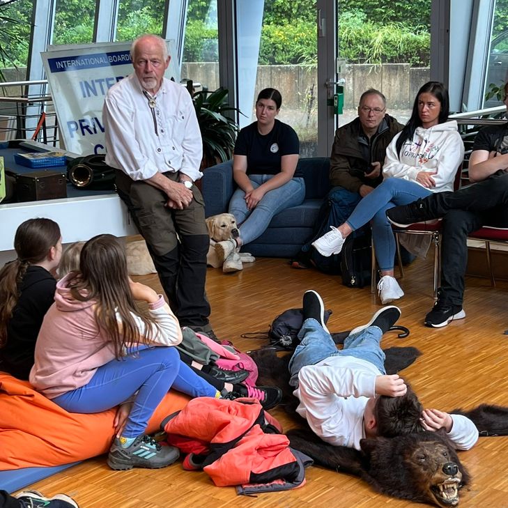 Die Rollende Waldschule fährt als mobiler »Lernort Natur« der Kreisjägerschaft Aachen e.V. in weit über 1.000 Einsätzen schon viele Jahre von Schule zu Schule, in Altenheime und Behinderteneinrichtungen sowie zu vielen großen Wochenendveranstaltungen. Für die Schulen, Behinderteneinrichtungen und Altenheime ist der Unterricht kostenlos. Carl zeigte auf, wie wichtig es ist, die Tierpopulationen in Gleichgewicht zu bringen, auch zum Schutz des Waldes, der wertvolle Aufgaben übernehme. Und er räumte mit manchem Vorurteil gegenüber Jägern auf.