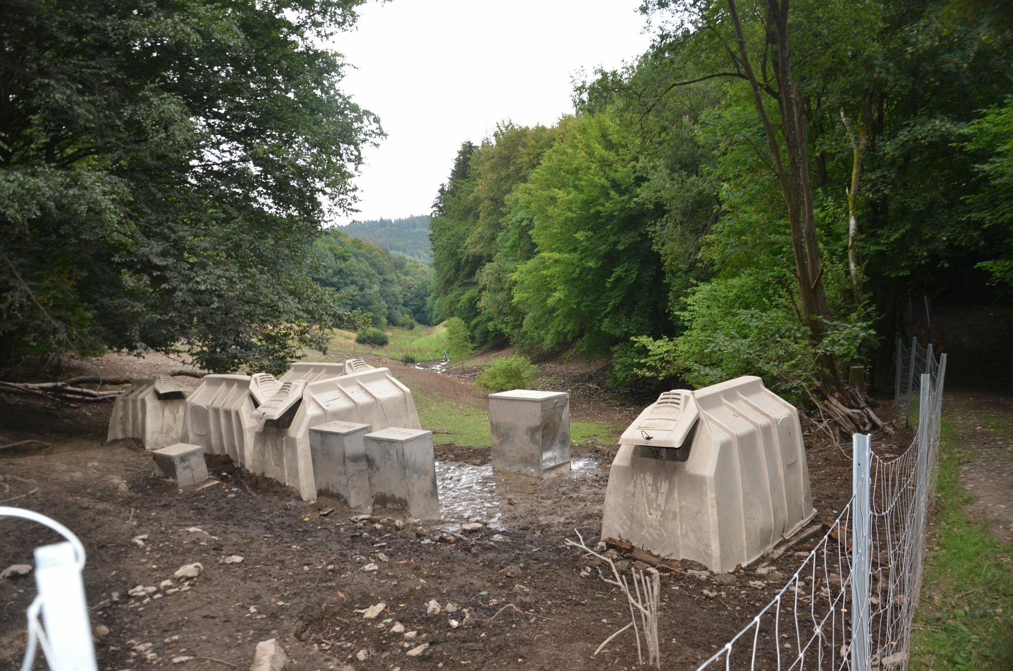 Im Frühjahr dann machten Bürger auf die Zustände in dem Gehege aufmerksam. Sie sorgten sich nicht nur um die zotteligen Tiere mit Unterwolle und lockigen Borsten, sondern auch um das geschützte Bachtal, das seltene Tier- und Pflanzenarten beheimate. Die begrünten Hangwiesen rechts und links des Baches wuchsen zu einer einzigen Schlammfläche heran.