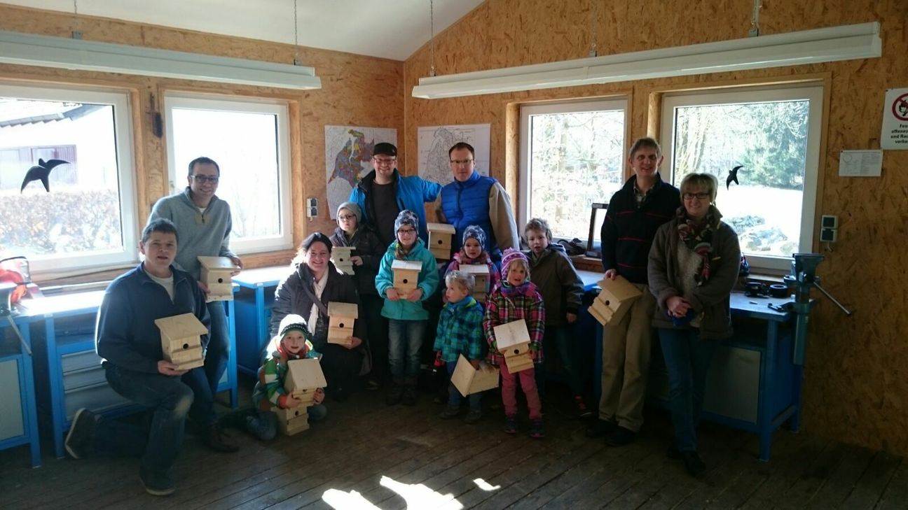 Damit dies auch gelang, hatte Naturschutzwart Eddi Janser die Holzteile zugeschnitten und Norbert Unterberger und Vorsitzender Georg Dülks die Arbeitsschritte erklärt. Danach hieß es für die Kinder mit ihren Eltern kräftig schmirgeln, bohren und schrauben, damit wieder viele Nistkästen entstehen konnten. Die Kinder und ihre Eltern waren so fleißig, dass nicht nur jedes Kind einen Nistkasten im heimischen Garten aufhängen konnte, sondern auch noch einige dieser neuen Vogelwohnungen für das Grundschul- und für das Kindergartengelände zur Verfügung standen. Mittlerweile sind alle an den passenden Stellen angebracht und die Vögel halten bereits Einzug und bereiten ihre Nester für die Eier vor. Natürlich warten die Kids bereits sehnsüchtig auf den Tag, an dem sich die ersten jungen Piepmätze lautstark melden, um dann ihre Freiheit in Vossenack zu genießen.