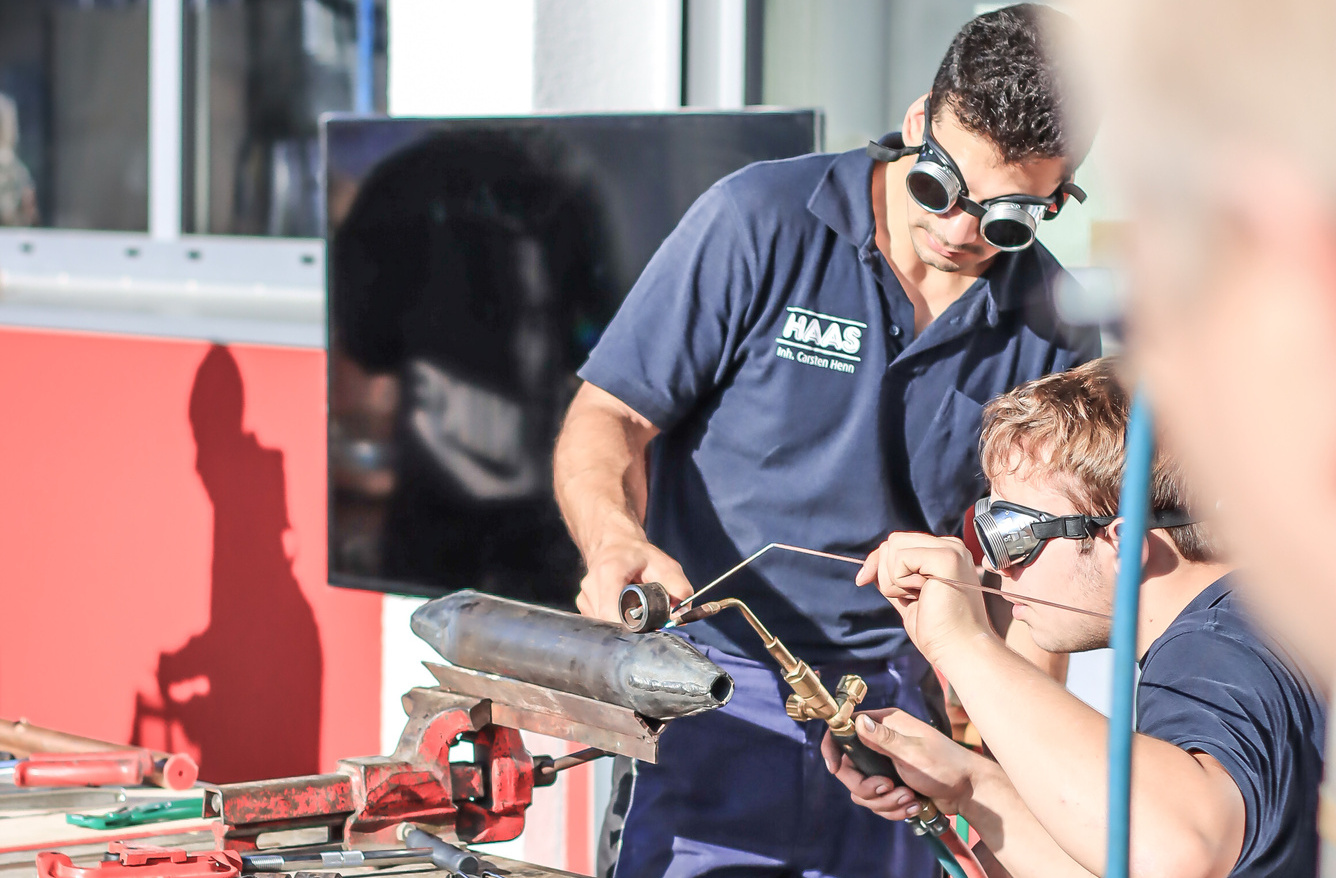 "Einfach machen", so hieß das Motto beim Infotag in der Eifel. Die Ausbildungsmeister der Kammer, Betriebsinhaber sowie ihre Meister, Gesellen und Lehrlinge hatten sich dazu eine Menge einfallen lassen. So konnten Stromverbindungen erstellt, Werkzeug-kisten aus Holz gebaut, am Simulator geschweißt, in der Lehrbäckerei gebacken oder an Übungsköpfen wunderbare Frisuren gestylt werden. Für jede und jeden war etwas dabei. Die strahlende Sonne sowie das Rahmenprogramm mit Musik, Talk, Grillstand, Cafeteria und Getränken rundete das Ganze perfekt ab.