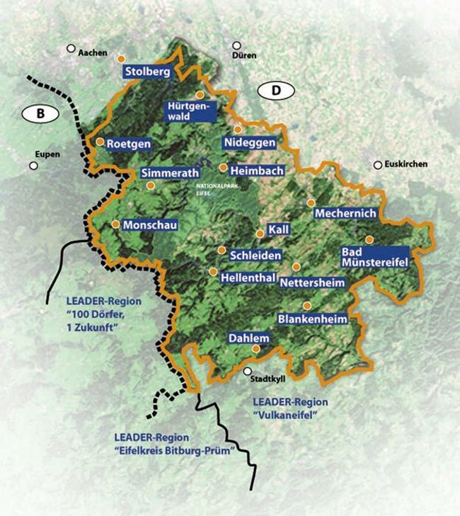 Das Dorfauto, der Flurheckenweg und die Neugestaltung des Wanderwegenetzes in der Nordeifel, der Generationenplatz in Kall oder die Zeitreise in die Schlacht im Hürtgenwald - all das sind Projekte der »Leader-Region Eifel«. Aus EU-Mitteln gefördert werden lokale und regionale Projekte umgesetzt. 65 Prozent der Kosten trägt die Europäische Union, den Rest die Initiatoren vor Ort. »Es geht darum, Ideen für die Zukunft zu entwickeln, Synergien zu nutzen und vernetzt von Projekten anderer zu profitieren«, erklären Sascha Schmitz und Nicolas Gath. Bei den beiden Geographen mit Magisterabschluss an der RWTH Aachen laufen die Fäden zusammen. Sie nehmen Projektideen entgegen, prüfen diese mittels einer Bewertungsmatrix auf Konformität mit den Förderkriterien, werben im so genannten Koordinierungskreis für die Idee und stehen den Projektverantwortlichen mit Rat und Tat zur Seite. Der Koordinierungskreis der Lokalen Aktionsgruppe der LEADER-Region Eifel hat erste Projektanträge der neuen LEADER-Förderperiode (2015 – 2022) bereits durchgewunken. So soll in Kalterherberg ein Walderlebnisparcours entstehen, in Kommern wird ein DorfBioTop eingerichtet und Juniorteamer sind für die Seelsorge junger Menschen im Nationalpark Eifel verantwortlich. »Es sind lokale Projekte, die auch andernorts umsetzbar wären«, zeigt Nicolas Gath den Grundgedanken von »LEADER« auf. »Den Bürger soll die Mitgestaltung ihres Lebensraums ermöglicht werden«, unterstreicht Schmitz, ohne dass Kompetenzen von Kreis oder Kommune tangiert würden.