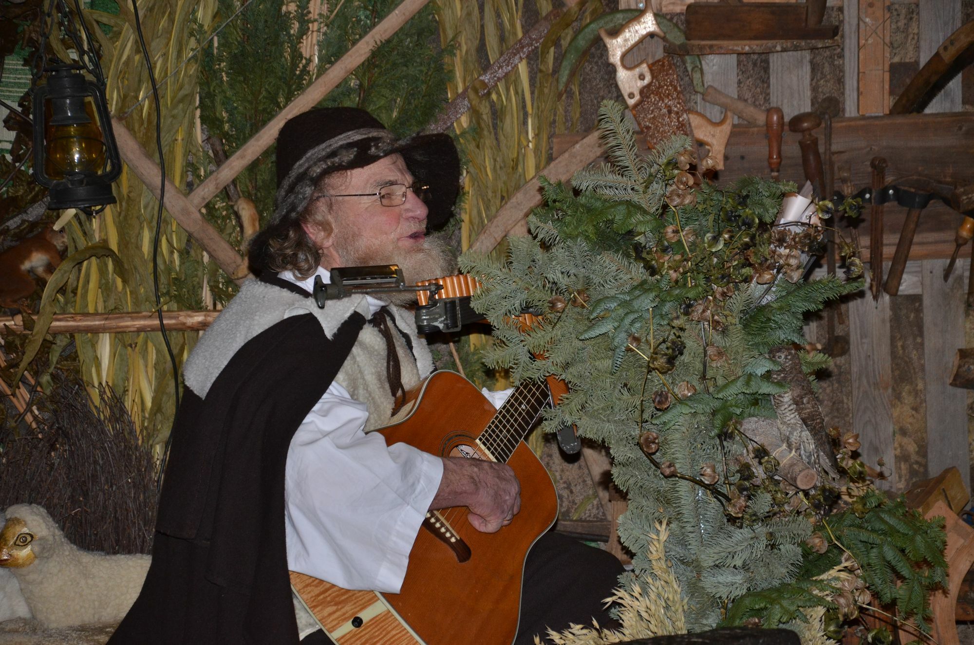 Ab Samstag, 3. Dezember, wird der »singende Hirte« Reiner Jakobs acht Wochen lang bis zum 29. Januar 2017 die Besucher der Landschaftskrippe musikalisch unterhalten. Mit Panflöte, Gitarre und Mundharmonika musiziert er täglich von 10 bis 18 Uhr in der Höfener Pfarrkirche St. Michael, um mit seinem Gesang Spenden für den Förderverein »Hilfe für krebskranke Kinder« im Klinikum der RWTH Aachen zu sammeln. Zu unregelmäßigen Zeiten erweitert ein Blasquartett das weihnachtlich-musikalische Programm.