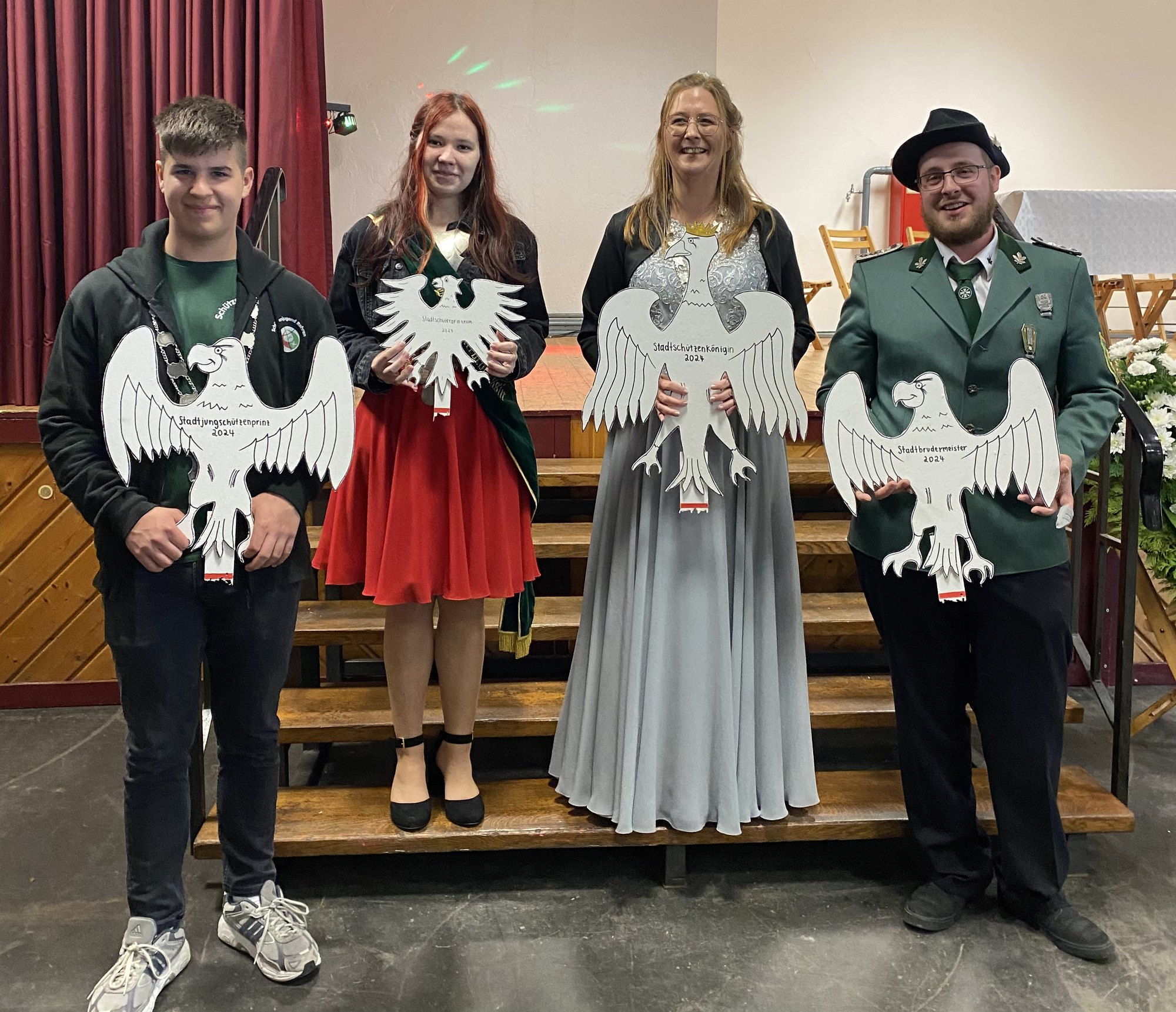 Die neuen Stadtmajestäten: Jannis Kirch aus Rohren, Hannah Gombert aus Kalterherberg, Diana Lutterbach aus Rohren und Yannick Mathar aus Rohren (v.l.n.r.)
