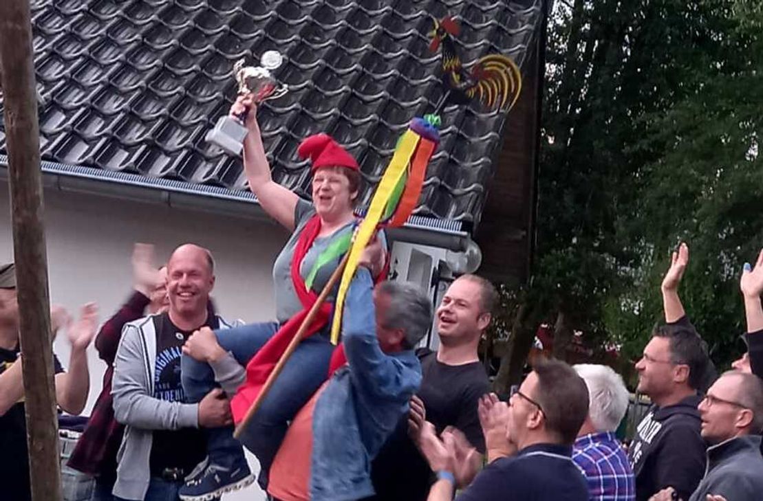 Nach 138 Schlägen ist Katja Semleit am Montag, 26.6.23 die erste Hahnenkönigin in der Geschichte von Strauch geworden. Die gut besucht Kirmes feierte ihre neue Hoheit ausgiebig bis in die Nacht. Mit musikalischer Begleitung wurde der Kirmes-Knochen "beerdigt" und Sie dann nach Hause begleitet. Seit 1996 wird in Strauch auf Kirmes-Montag ein neuer Hahnenkönig bzw. dieses Jahr erstmals eine Hahnenkönigin gekürt.
