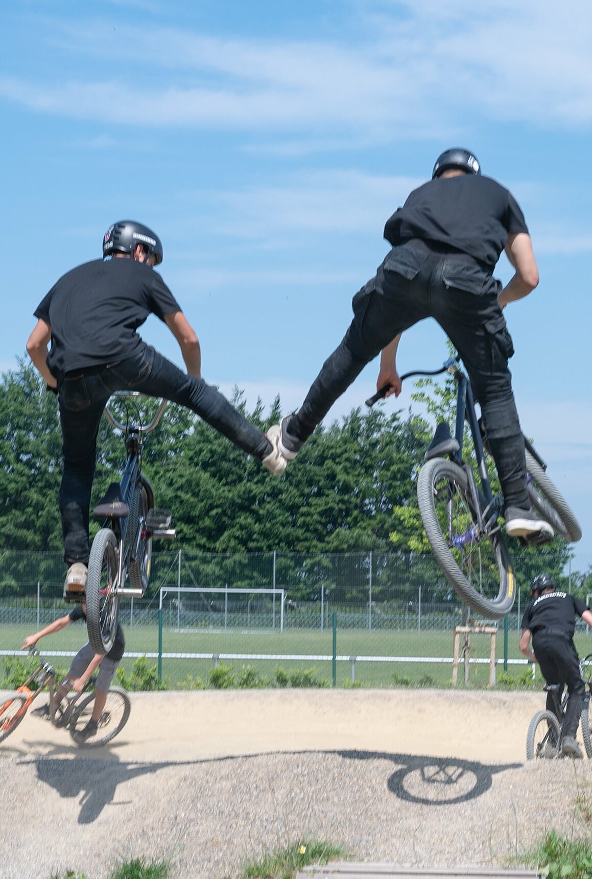 Die Zuschauer zeigten sich begeistert. Auch die heimischen Athleten reihten sich ein und zeigten, was sie drauf haben. Diese Abfolge von Stunts der ganzen Gruppe, sowohl auf der Jumpline, als auch auf dem Pumptrack haben viele Besucher zum ersten Mal erlebt.