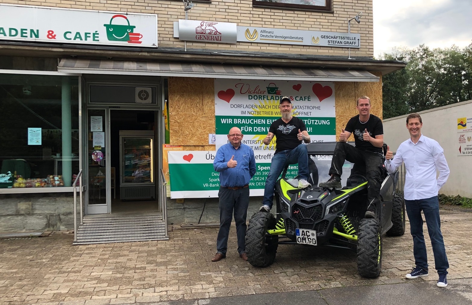 »Wir blicken nach vorne und freuen uns über jeden Tag, an dem es einen Fortschritt gibt«, so Jochen Emonds. Dank dieser Einstellung hat der Dorfladen nun seit einer Woche wieder mit einer Notversorgung geöffnet. Um den Dorfladen wieder so liebevoll herzustellen wie vorher, wird allerdings mehr benötigt als viele Hände. »Die Schäden durch das Hochwasser liegen im sechsstelligen Bereich«, so Emonds. Als Jörg Coonen von Lucky Lines Tattoo aus Simmerath (vorher Xclusive Ink) von den Auswirkungen des Hochwassers auf den Dorftreffpunkt erfuhr, fühlte er sich direkt angesprochen. »Ich sehe das Studio auch als sozialen Treffpunkt und es gibt nichts Schöneres, als eine Gemeinschaft zu haben«, so Jörg Coonen. Deshalb hat er kurzerhand die Aktion »Tattoo gegen Spende« für den Vichter Dorfladen ins Leben gerufen. »Von 9 Uhr morgens bis 0.30 Uhr nachts haben wir durchgehend tätowiert. An dieser Stelle vielen Dank an alle Tattoo Artists«, so Coonen. An einem einzigen Tag kamen dank dieser selbstlosen Aktion stolze 12.222,50 Euro zusammen. Aufgestockt wurde die Summe von seinem Kumpel Marcel Offermann, der mit seinem Offroad Buggy fünfminütige Fahrten gegen eine Spende anbot. Die dadurch gesammelten 480 Euro gab Offermann »on-top«.