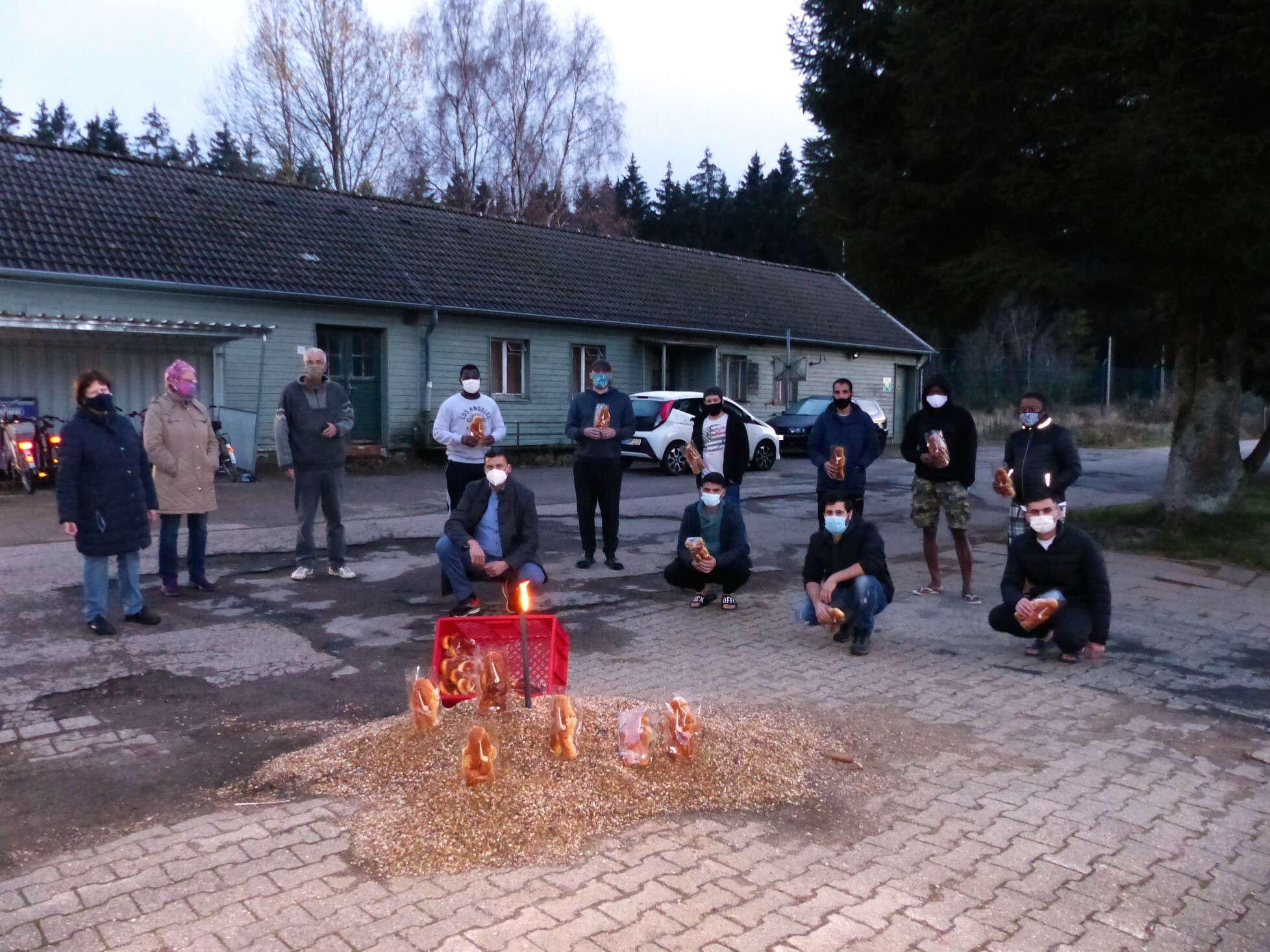 Schon früh morgens erfreute der St. Martinsausschuss Simmerath jedes Kind mit einer Brezel, die beim feierlichen Frühstück zu heißem Kakao und mit leuchtenden Augen verspeist wurde. Doch auch die Kinder wollten anderen Menschen eine Freude machen. So zogen sie am Vormittag mit ihren selbst gestalteten Laternen gemeinsam mit den Erzieherinnen durch den Ort und sangen fröhlich Martinslieder. Dabei führte ihr Weg vorbei an der Itertalklinik, wo man den Kindern begeistert zuwinkte. Schließlich endete der Weg auf der Terrasse bei Bewohnern und Pflegepersonal des Seligen Gerhard. Dort war die Freude groß und die Fenster wurden geöffnet und lockten einige Bewohner und Pfleger auf den Balkon. Die Kinder sangen dort gerne einige Martinslieder und zeigten stolz ihre Laternen, bevor der Weg zurück in die Kita führte. Dort durften die Kinder schon seit einigen Wochen zu „echter Begleitung“ des Schülerorchesters der Hansa Blasmusik ihre Martinslieder singen. Denn auch die jungen Musiker hatten an die Kinder gedacht und bereits vor den Ferien (als sie noch proben durften) eine CD für die Kinder aufgenommen, die eine Stimmung „wie im echten Martinszug“ ankommen lies. So waren sich die Kinder der Arche Noah am Ende des vormittags alle einig „so einen schönen Tag mit vielen Überraschungen“ verbracht zu haben. Ebenso durften sie die wichtige Erfahrung machen „wie schön es ist, anderen eine Freude zu machen – fast wie der echte St. Martin.“ Weckmänner für die Flüchtlingsunterkunft Am Sankt Martinstag gab es in der Flüchtlingsunterkunft Langschoß eine Überraschung. Leonie Lepers (77) vom gleichnamigen Arbeitskreis hatte für die dortigen jungen Bewohner Weckmänner als Geschenk mitgebracht, wobei Sozialarbeiter Hichan Fallah, der sich seit Frühjahr 2019 um die in Langschoß untergebrachten Flüchtlinge intensiv kümmert, den Bewohnern die Worte von Lepers ins arabische übersetzte. Durch die Weckmann-Aktion wolle man den jungen Menschen eine Freude machen und auch anhand der Martinsgeschichte verdeutlichen, dass Solidarität über alle Kultur- und Sprachkreise hinweg völkerverbindend sein kann. Sozialarbeiter Hichan Fallah zur Aktion noch einen anderen Aspekt zur Sprache: „Die Leute, die momentan hier sind, können aufgrund der Pandemie derzeit nur zur Schule gehen und kommen dann hierher zurück. Sie haben sonst keine Kontaktmöglichkeiten. Ich glaube, dass solche Aktionen in diesen Zeiten diesbezüglich helfen.“Weihnachtscircus-Aufbau auf Zielgeraden